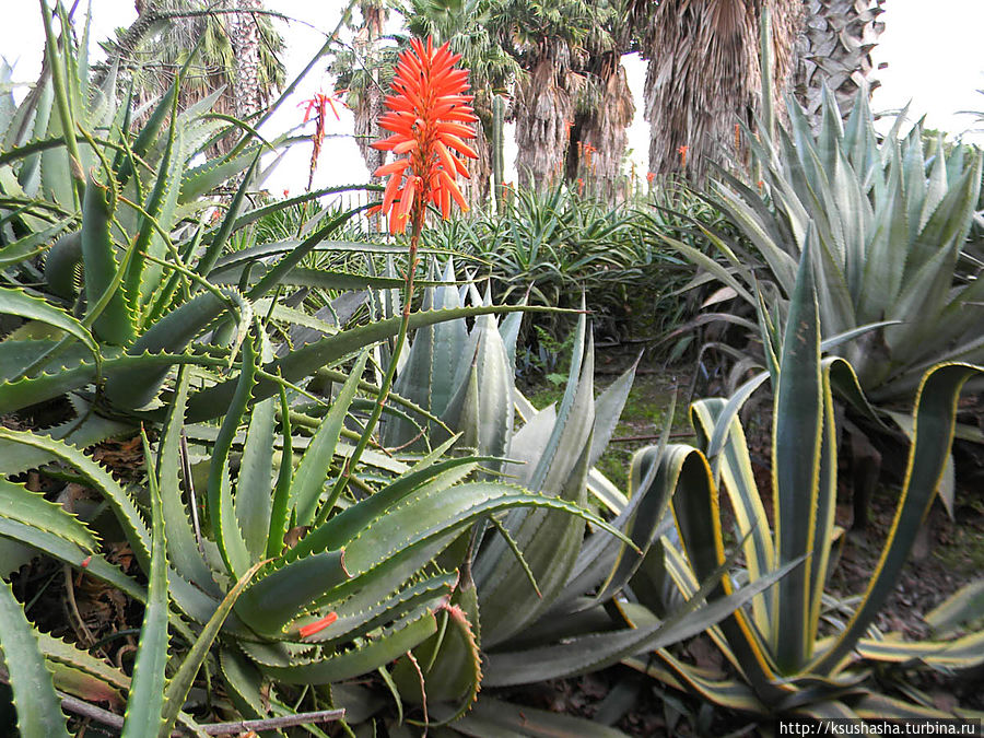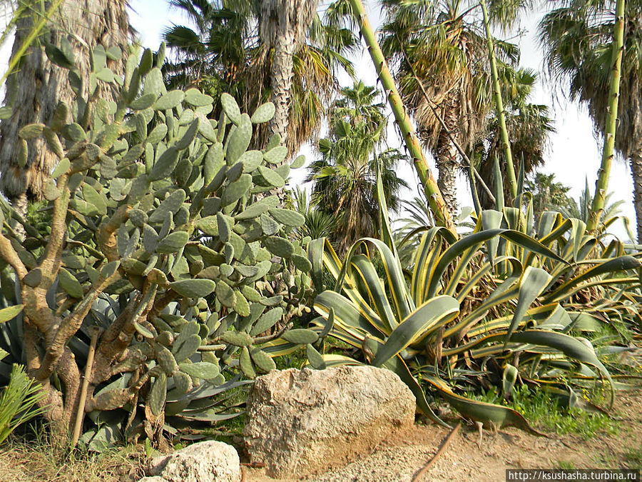 В саду кактусов многообразие произрастающих здесь колючих особей поражает воображение всех посетителей. Помимо кактусов в привычном понимании, в саду кактусов растёт множество экзотических и необычных растений этого вида, в том числе, и кактусы в виде деревьев. К сожалению, пока мы туда добрались, он уже закрылся. Но даже просто обходя его снаружи, мы увидели немало красоты.