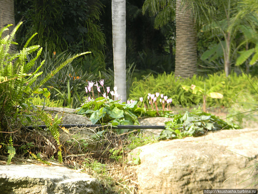 Сад тропических растений представляет собой небольшую территорию, покрытую красивыми деревянными дощатыми дорожками под тенью пальмовых деревьев. Великолепные цветы украшают дорогу к небольшим искусственным озерам, населенным лебедями и редкими рыбами. В этом саду поддерживается уникальный субтропический микроклимат, благодаря которому создается оптимальная среда для выращивания огромного разнообразия орхидей и ползучих растений.