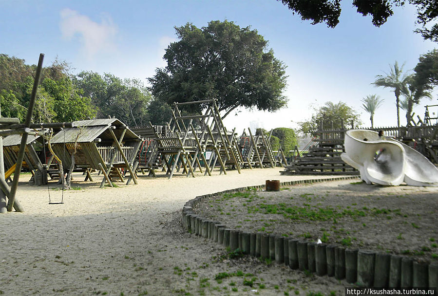 Для детей в парке Яркон построен деревянный городок для активного отдыха.И есть возможность пообщаться с представителями фауны в мини-зоопарке или «Цапари» — птичьем уголке.