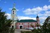 Главный вход в монастырь — колокольня со Святыми вратами, высотой 52 метра, открывается только при торжественных случаях, состоит их четырех ярусов с главою и крестом.