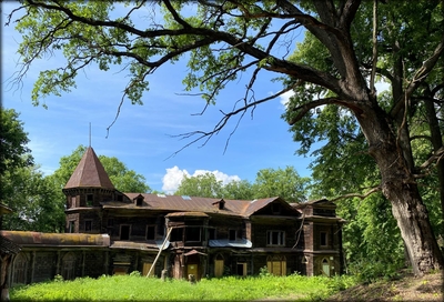 Усадьба сейчас в заброшенном и крайне аварийном состоянии. Удивительно, как за столько лет она не сгорела. Здесь можно почитать и посмотреть интересные подробности.