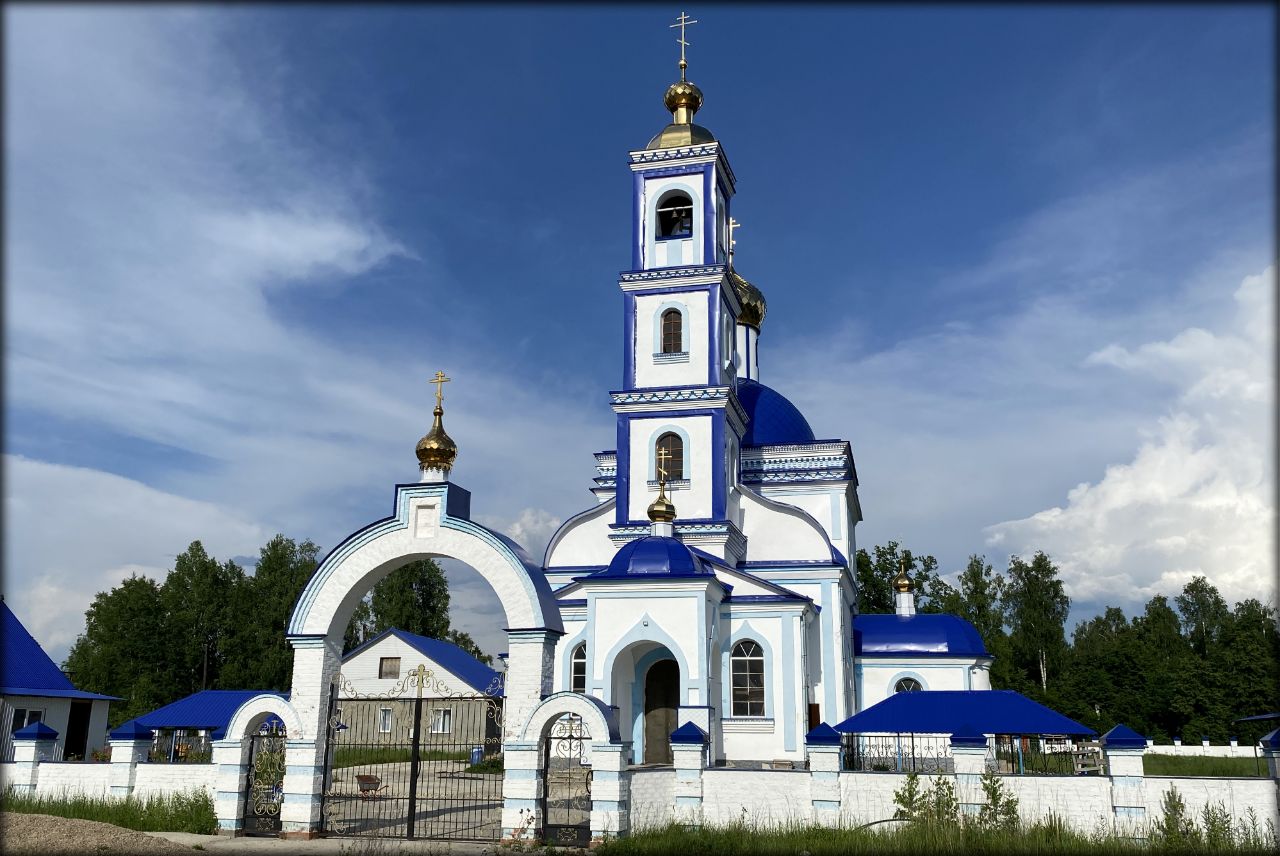 Еду дальше. Если около дороги стоит храм, то я практически всегда его фотографирую. Это церковь Иоанна Богослова XIX века в крупном селе Захарово. Снимки православных сооружений я собираю для нового альбома
