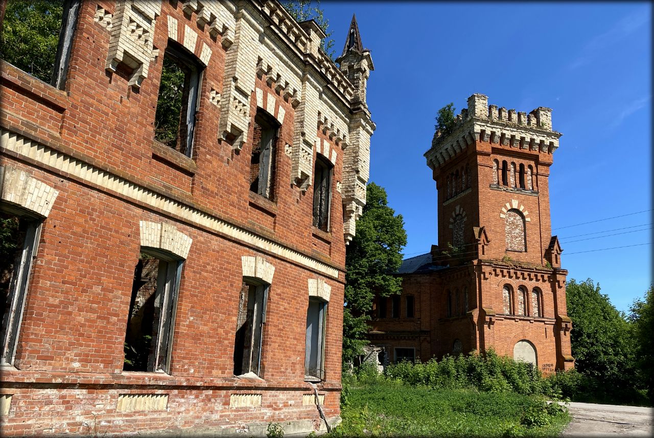 Следующей, пятой примечательной точкой на карте Рязанской области стало село Кирицы. Здесь находится потрясающая усадьба, построенная в 1889 году по заказу Сергея Павловича фон Дервиза, происходившего из семьи обрусевших немцев.
