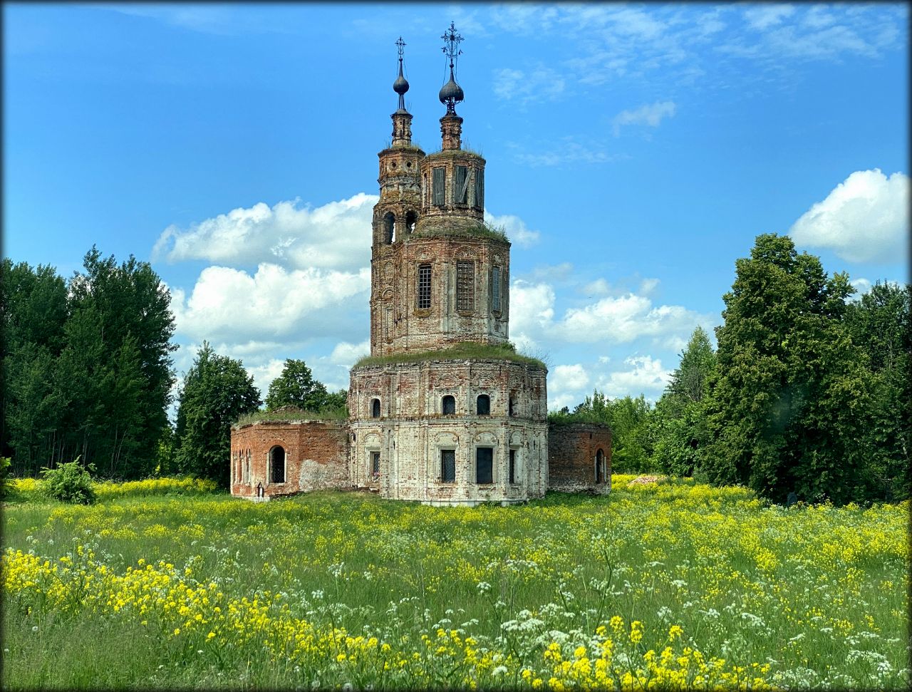 На окраине села Коленцы я провёл больше всего времени. Я когда увидел заброшенный храм на фоне живописного неба и луга, то начал фотографировать не переставая. Красота непередаваемая.