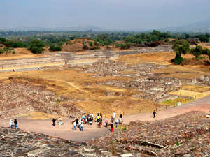 С пирамиды Луны открывается красивый вид на Дорогу Мертвых и широкое Мексиканское