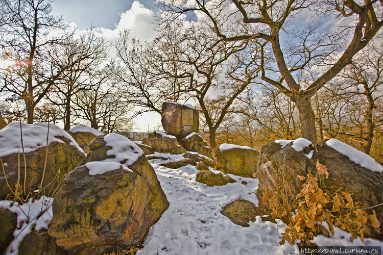 Поскольку Теплице располагаются на холмах (вернее – на «холмогорках), то совсем рядом с одной из вилл встречаем уголок, напоминающий нашу скалистую, с валунами, Карелию: