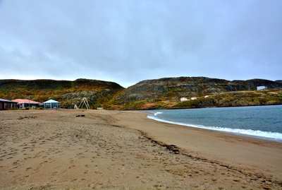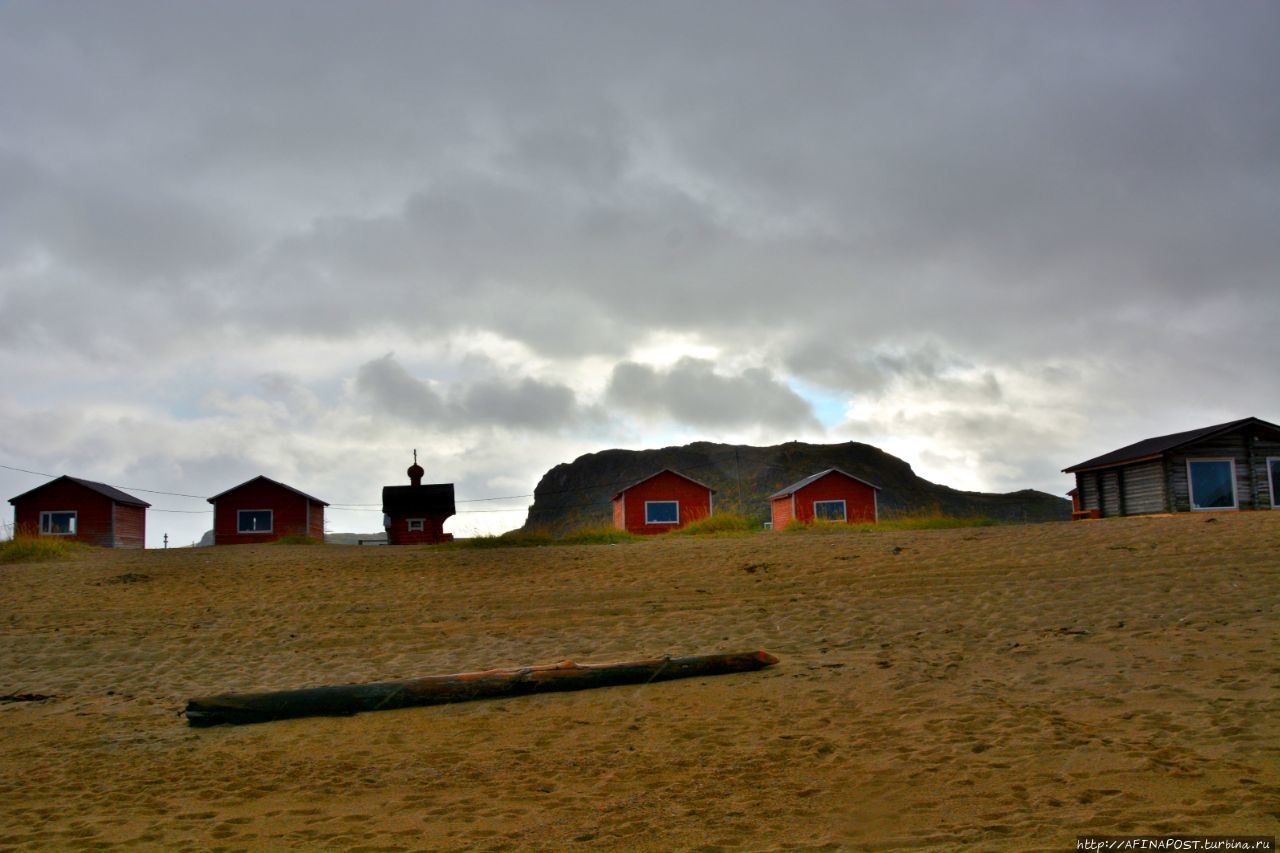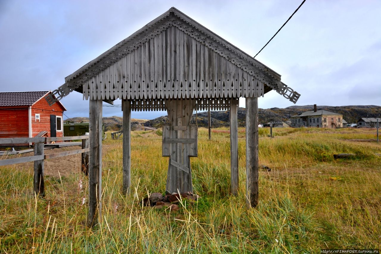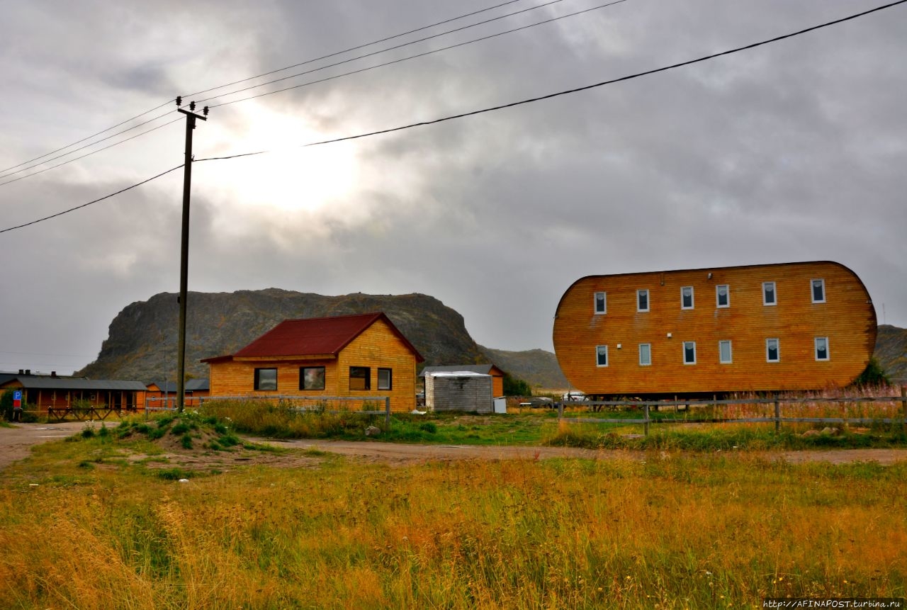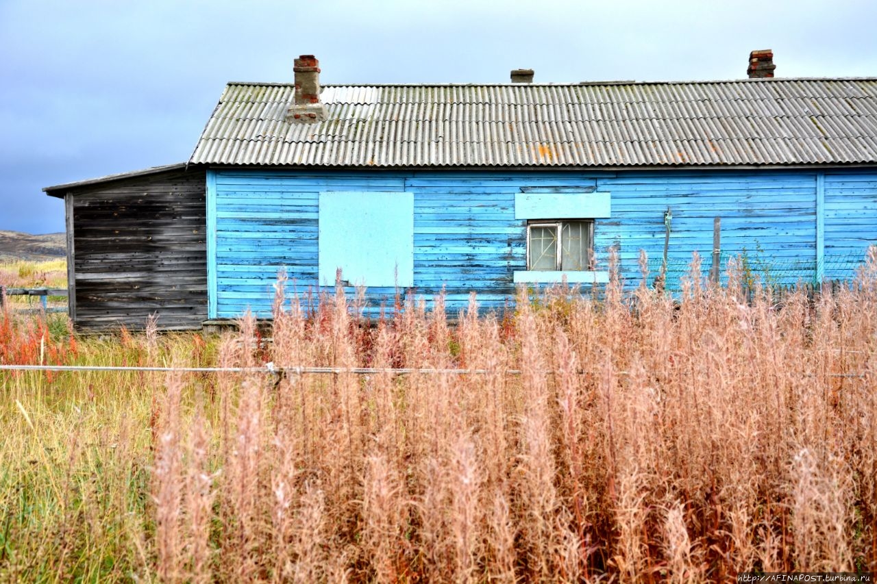Двухэтажные деревянные бараки давно превратились в заброшки, кроме них, стоят разрушенные сараи-избушки, а перекошенные деревянные гаражи для лодок и катеров, давно потерявшие свою актуальность, портят вид берега залива и реки Териберки. Почему из не разбирают на дрова не понятно, всё — это уныло и негативно. Везде здесь царят упадок и разрушение.