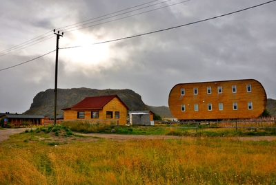 В Териберке нет прямых улиц, застройка разных времён хаотична, такое впечатление, что кому где понравилось место, там и построился. Здания изрядно потрепаны жизнью и ветром с моря, а по внешнему виду, иногда, трудно определить жилой дом или уже заброшен.