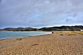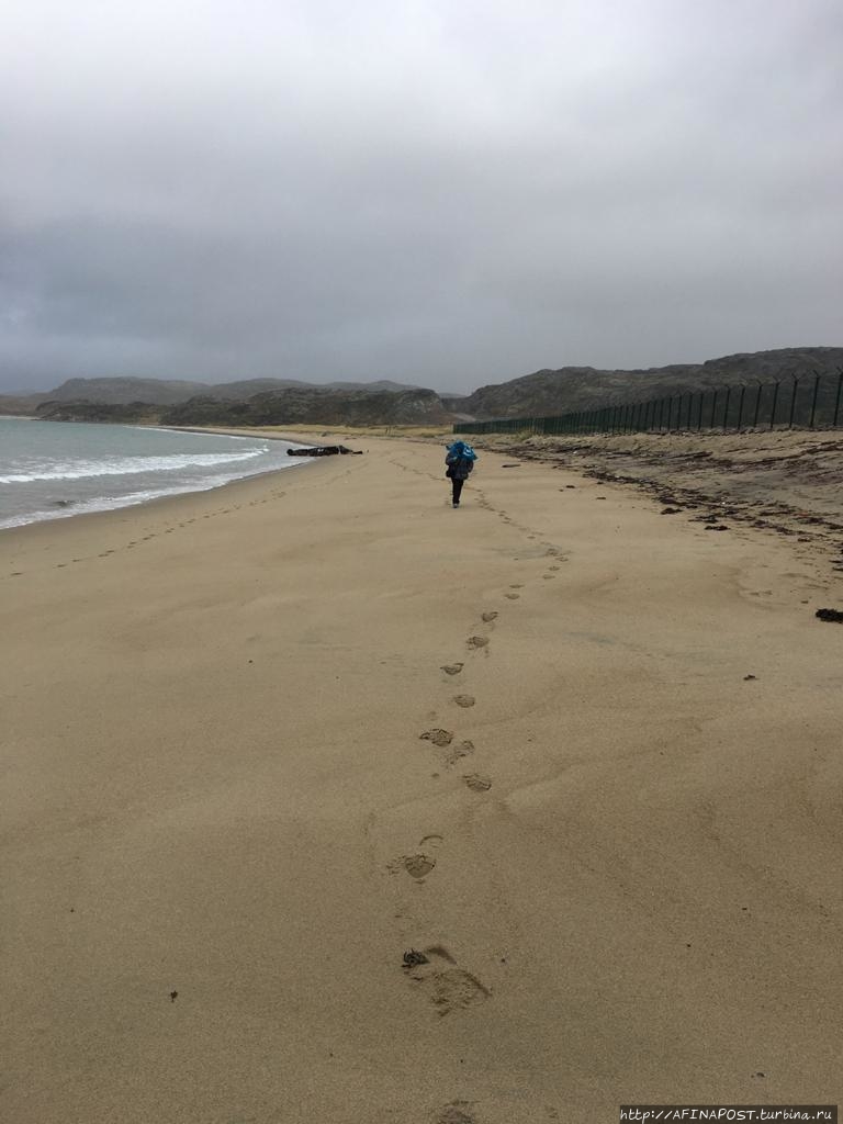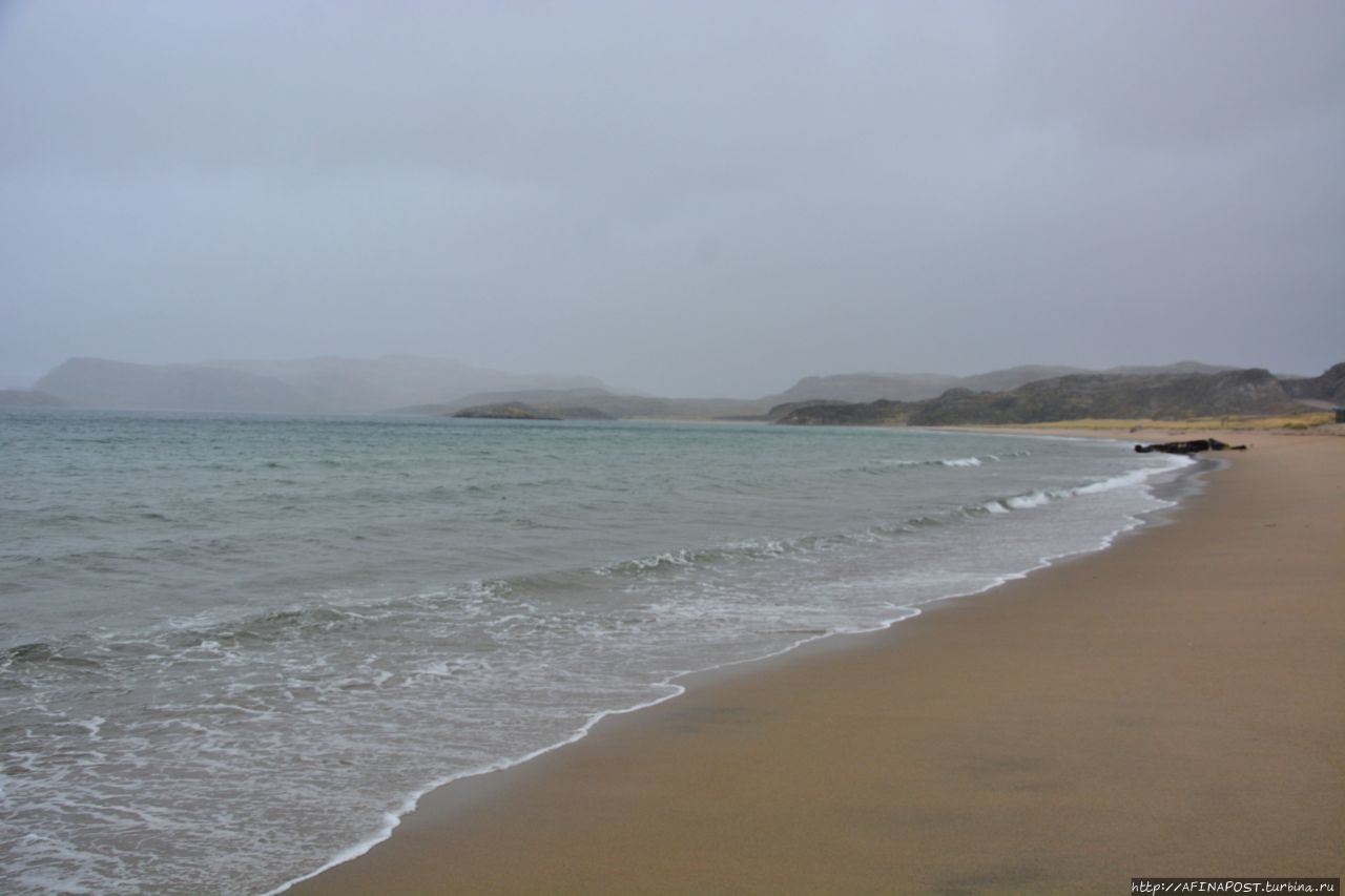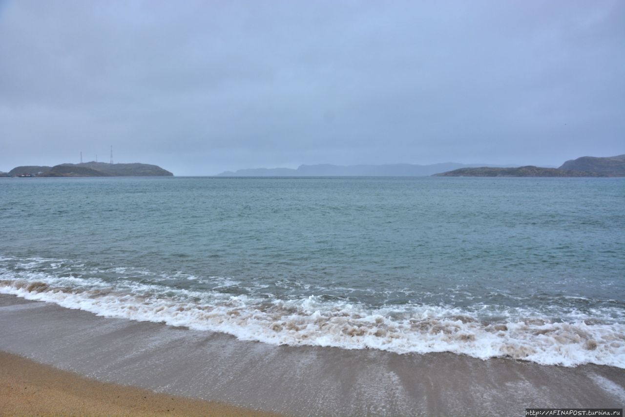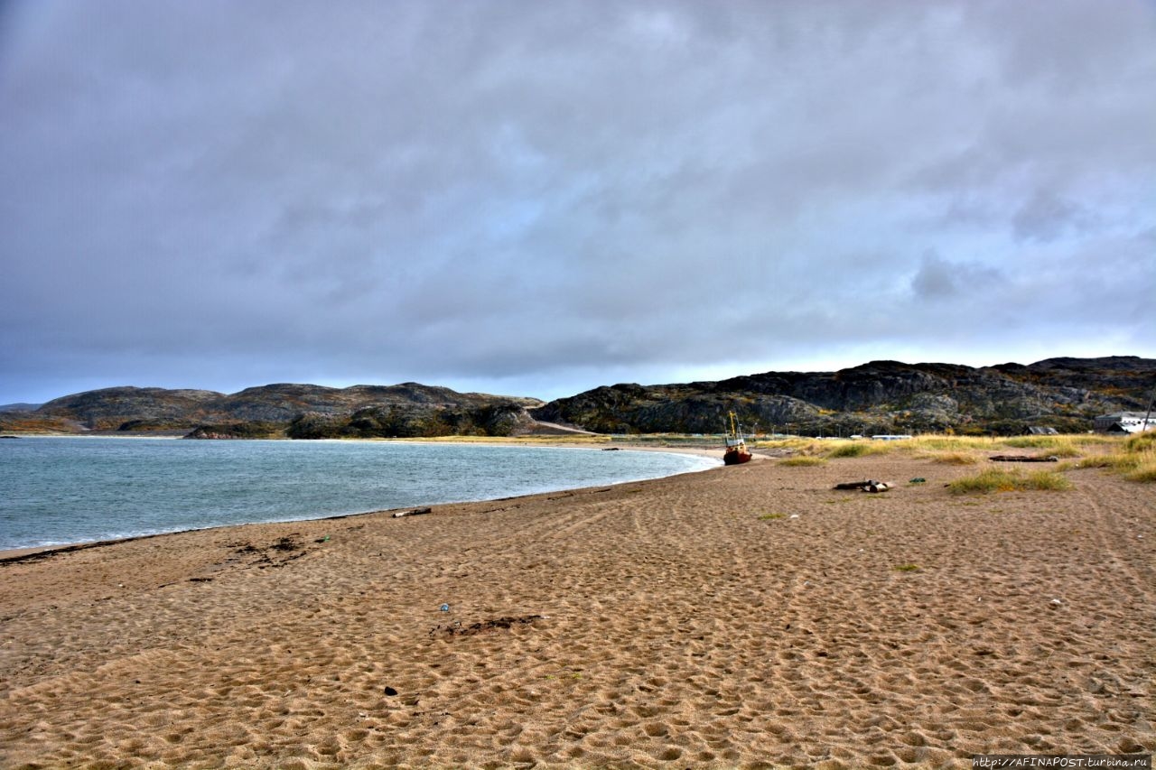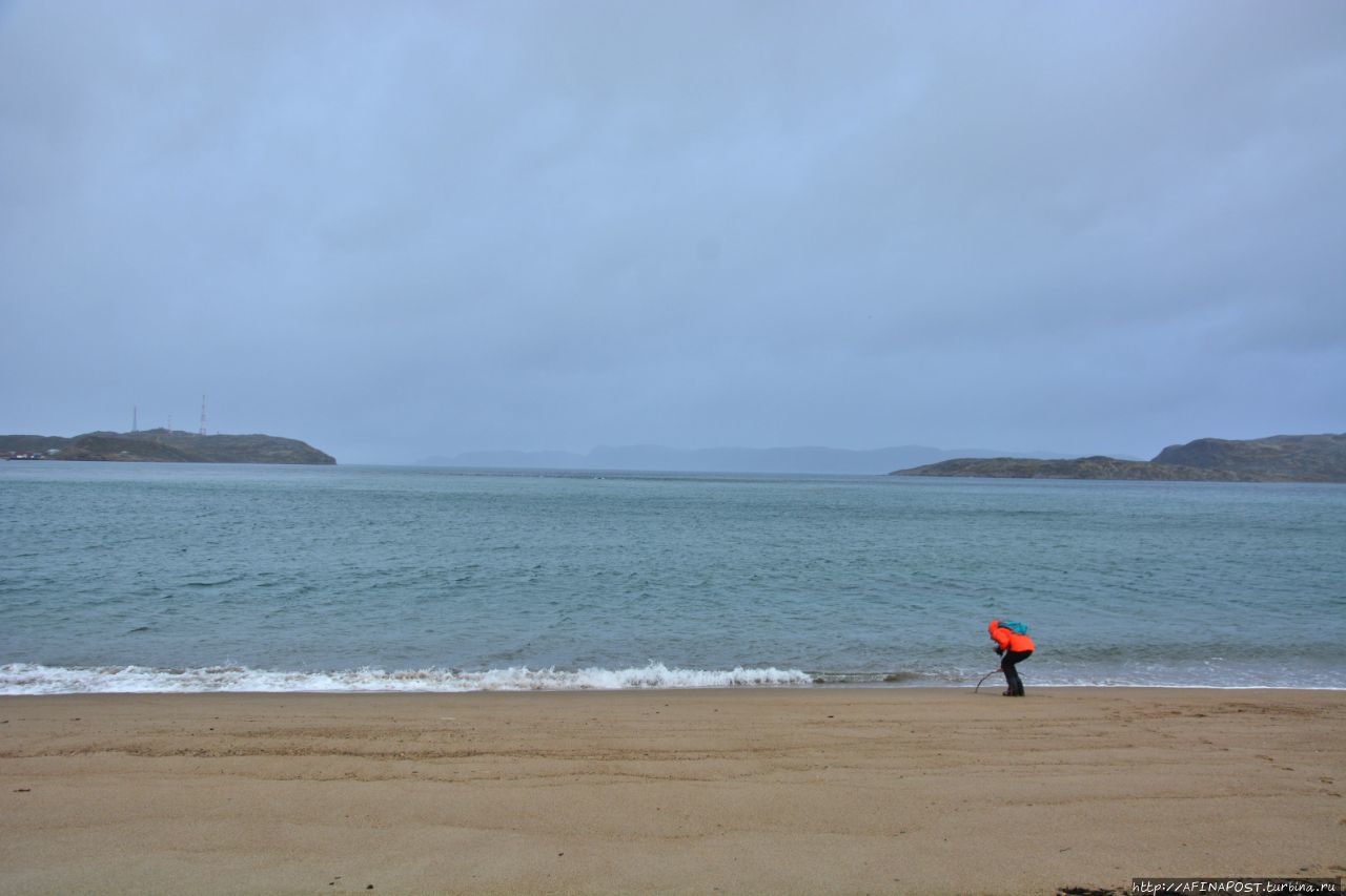 Посёлок стоит на берегу каменистой Териберской губы, а нам, неожиданно открылся совершенно большой и красивый песчаный пляж! Никаких камней и камушков — жёлтый крупнозернистый чистый песок!