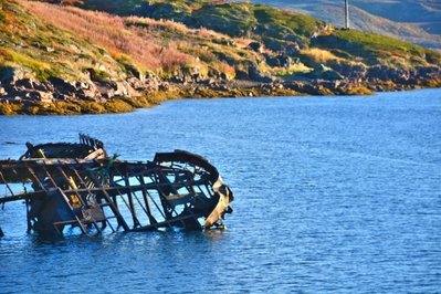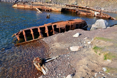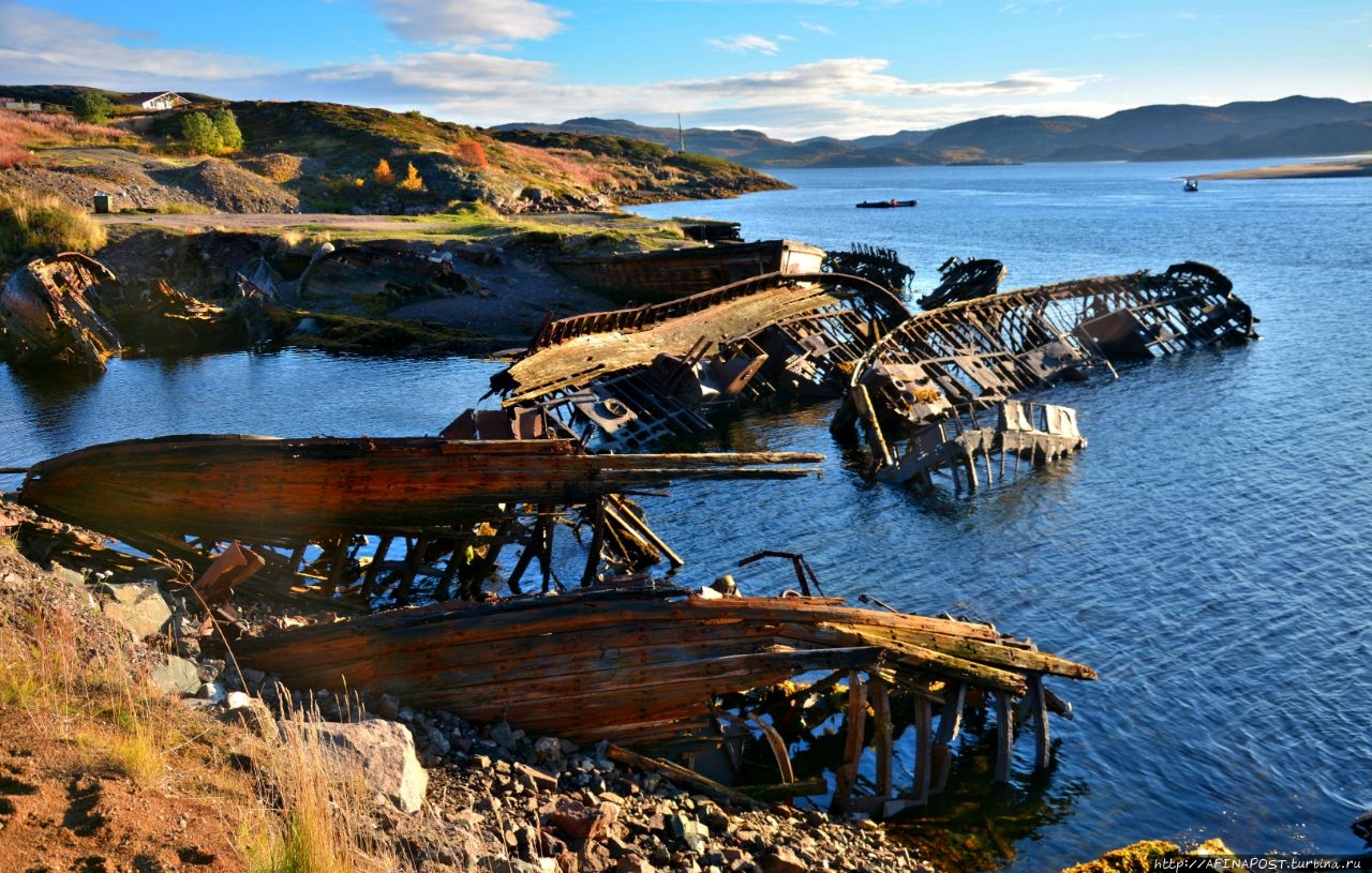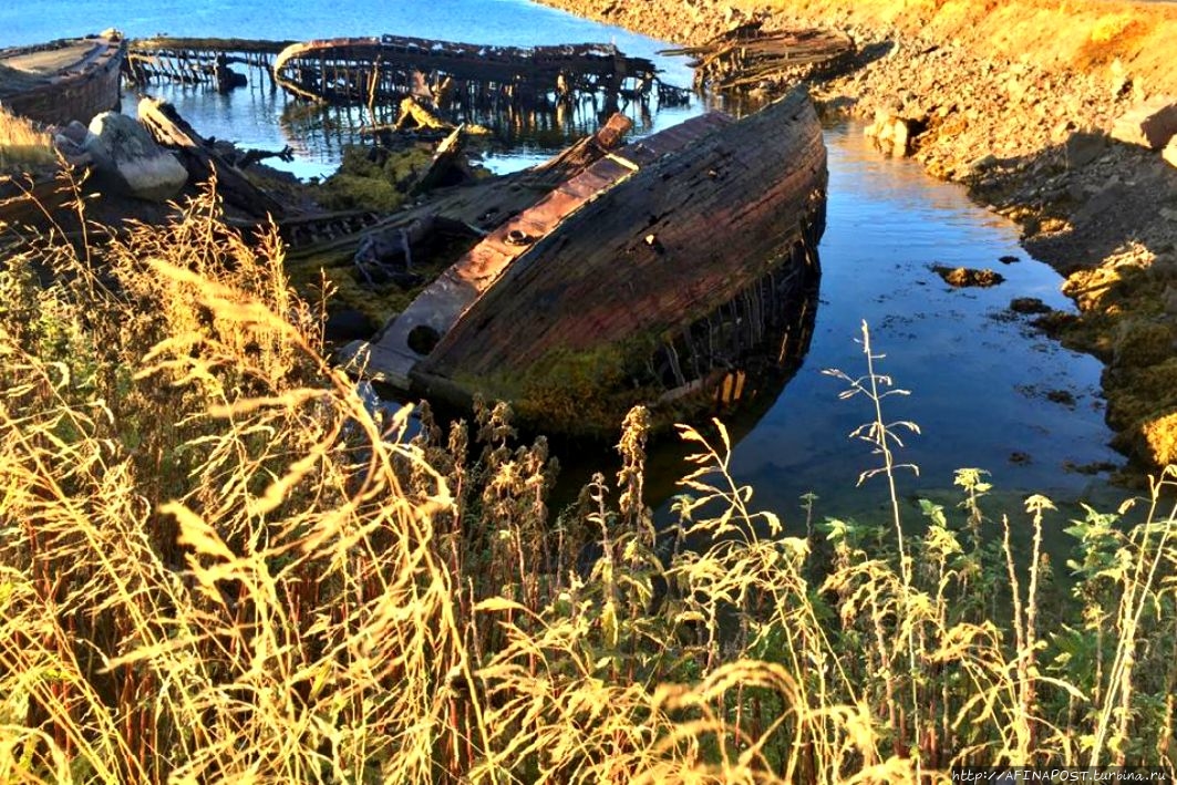 Шикарные пейзажи и красивая природа вокруг, а тут скелеты судов торчащие из воды,