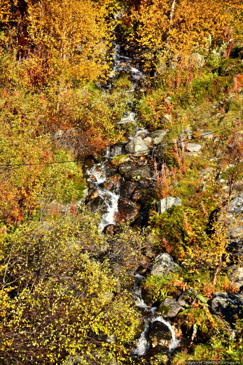 Напротив коллекции старого причала, через дорогу, с горы журчит маленький водопадик,