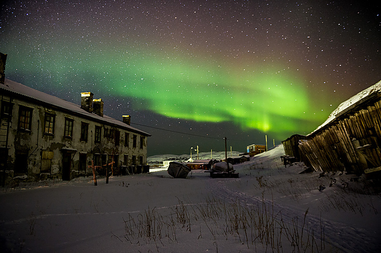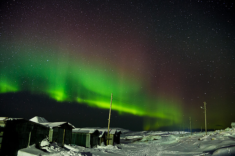 Село Териберка, где мы с Димкой поселились, далеко за полярным кругом, где с самого утра продолжается вечер, а солнце в феврале еле-еле отрывается от горизонта. Длинные тени тихо крадутся по снегу и к вечеру сливаются в сумрак, который заполняет собой всё вокруг, медленно превращаясь в ночь, а там и первые звёзды! Самое время караулить солнечный ветер, который так красиво, порой, разукрашивает ночное небо.
