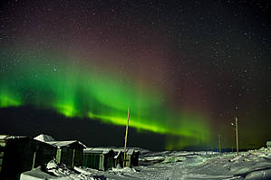 Начинается вахта. Пронизывающий ветер собирает горсти колючего снега и швыряет в лицо, мелкие кристаллики снега царапают уже порядком онемевшие щёки и стремятся залепить глаза. Укутавшись во всю тёплую одежду, натянув по две пары толстых носков , я всё равно «танцую» только так можно сохранить хоть какое то подобие тепла и понаблюдать за небом, выискивая первые признаки северного сияния.