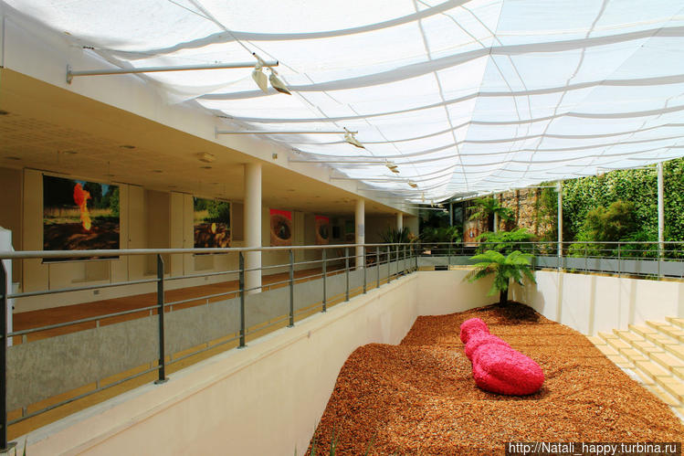 Странная розовая фигура в павильоне экзотических растений очень сильно удивила, я всеми силами пыталась включить воображение, и придумать хоть что-то, какой садовый экспонат это может быть, но то ли я не в том настроении сюда попала, то ли воображение у меня испорченное, ничего путного на ум не приходило, а обозначающих надписей мы не обнаружили.