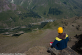 Через два с половиной часа пути первая станция подъёмника осталась далеко внизу, а посёлок Терскол стал совсем-совсем маленьким.