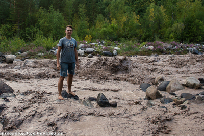 Сам Терскол очень маленький посёлок, прямо за жилым сектором протекает река Баксан. Мы сразу окрестили её "коричневой". Я и не думал раньше, что у реки, спускающейся с гор, может быть такой цвет. В воде много различных грунтовых примесей и поэтому её цвет кажется таким необычным.