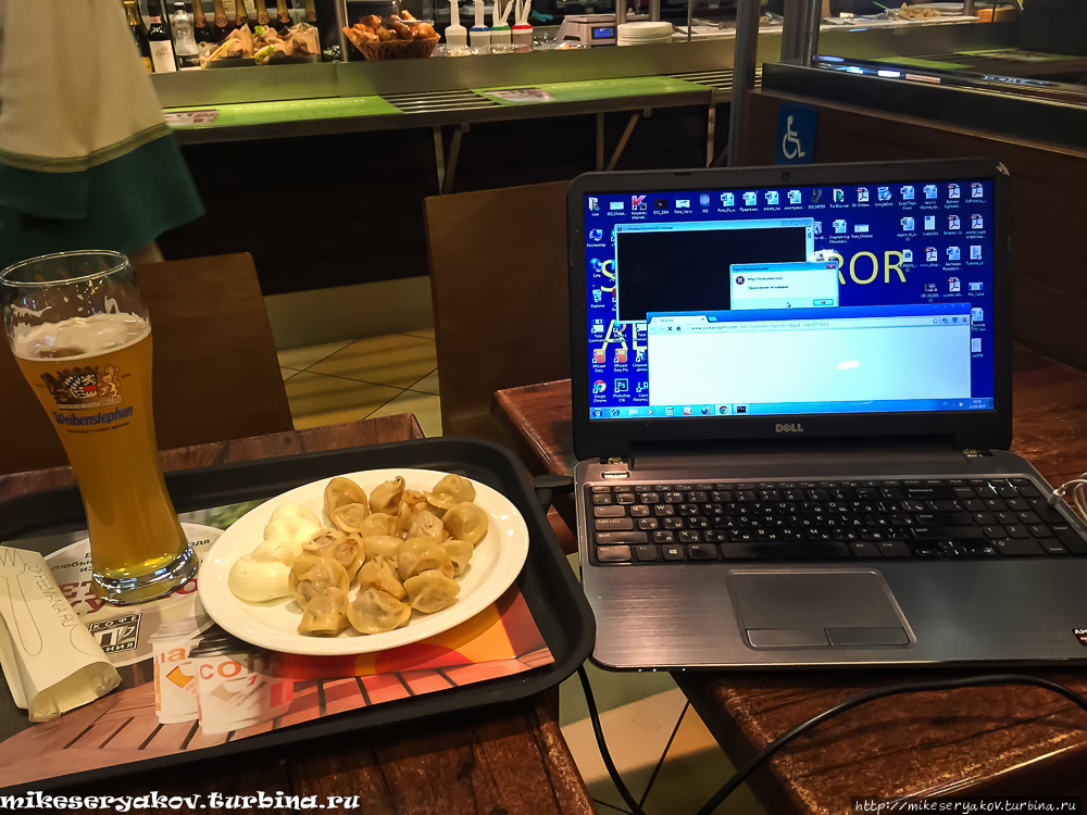 Я чуть было не проспал свой утренний рейс, но благо, что была суббота и я сумел за 20 минут собраться и выехать из дома. Тёплое августовское утро. Выходной. Пробок нет. Все ещё спят или, едва приоткрыв глаза, включают "первыйканал" и тянутся к знаниям.))) Позавтракать дома не получилось, но и за его пределами хорошенько бодрит чашечка свежезаваренного кофе бокальчик, а то и два нефильтрованного пива с пельменями.