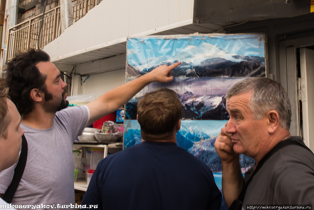 Если зимой здесь в основном спортсмены — горнолыжники, то лето — время альпинистов. Эти ребята, так же как и мы, пришли покорять самую высокую гору Европы и сейчас на карте рассматривают место, где будут ночевать и как будут подниматься. А мне, если честно, даже на фотографии было страшно смотреть на 2 заснеженных "зуба" Эльбруса. Поэтому я старался вообще не думать о том, как буду забираться туда.