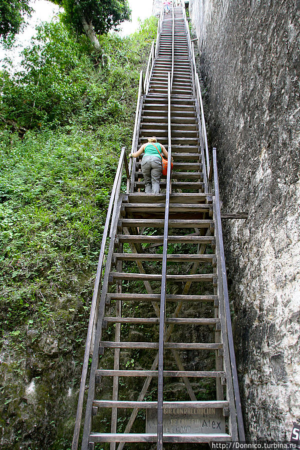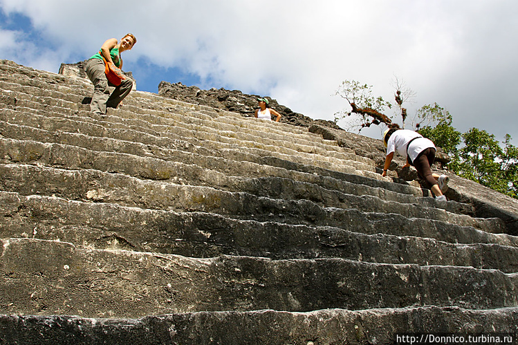 На первый храм забраться не получилось, а вот на второй мы залезли правда не по ступенькам спереди, а по специальной лестнице устроенной сзади храма. Глядя вверх сразу вспоминаются сцены жертвоприношений из фильма "Апокалипсис" Мела Гибсона, когда головы и тела (отдельно) скатывались вниз по этим крутым ступеням...