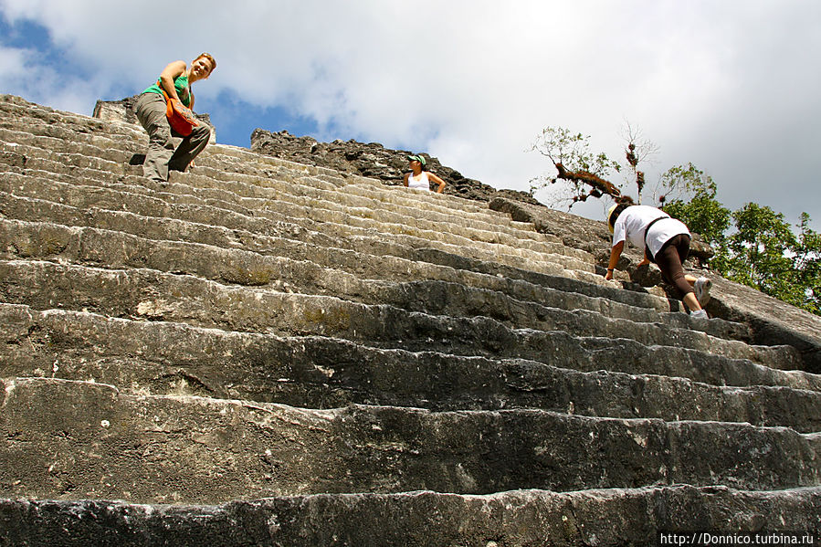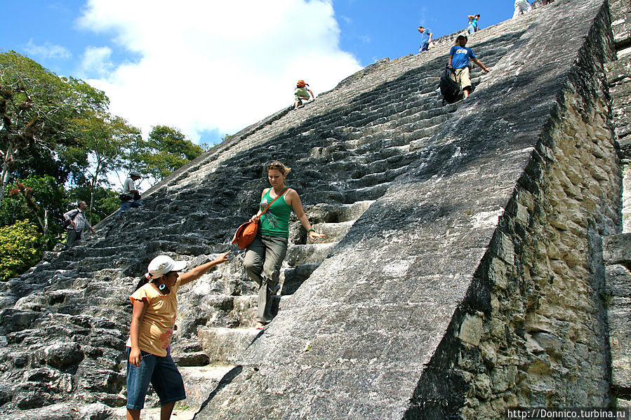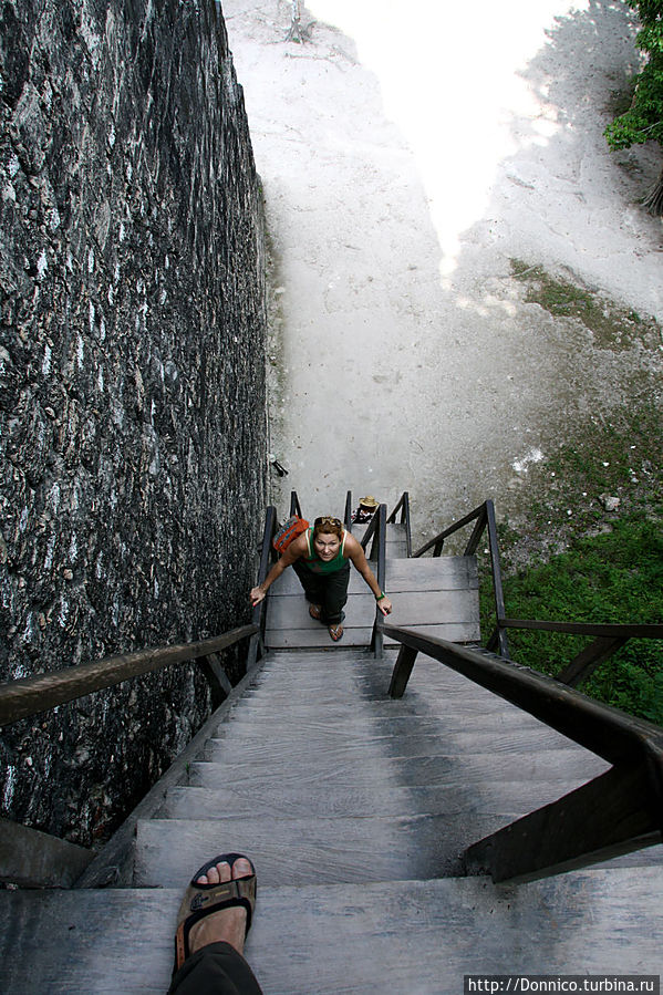 Если вернуться к Тикалю по нему можно бродить днями, пока хватает сила в ногах, чтобы лазить по крутым ступеням пирамид. На многих из них ступенек нет, и спуск с них вопрос индивидуальной скорости каждого. Кто-то может легко сбежать за секунды, кто-то спускается медленным шагом за минуты придерживаясь за ступеньки руками, ну а кто-то ползет на карачках вниз спиной вперед что занимает полчаса не меньше.