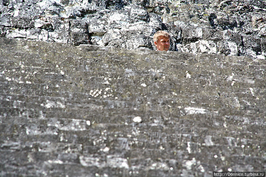 Именно здесь мы провели много времени, возможно час и больше. Нашли себе уютные места на одном из выступов этой пирамиды и просто сидели, впитывая в себе энергию пирамиды, города и сельвы.