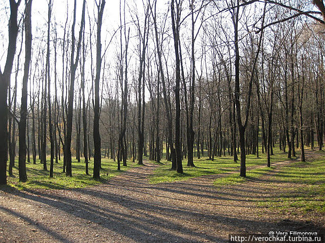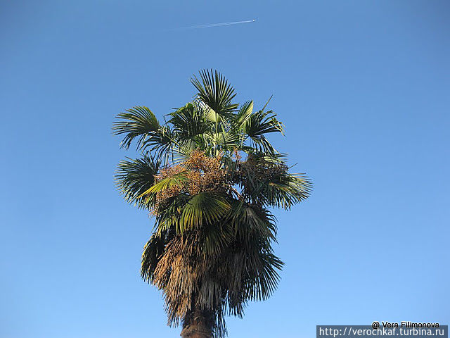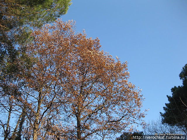 В парке наряду с соснами, эвкалиптами, дубами и мимозой растут и пальмы.