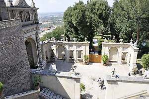 Вилла была разбита в 1550 году в Тиволи, в 32 км от Рима, недалеко от знаменитой виллы римского императора Адриана и античного храма Геркулеса Виктора. По образу и подобию древних сооружений кардинал Ипполит II д’Эсте решил построить свою виллу, стремясь воссоздать пышность и роскошь архитектуры Древнего Рима. Трёхэтажная вилла на мощном цоколе, обращённая парадным фасадом к Риму, возвышалась на крутом склоне горы. Вилла напоминала сказочный дворец, сад – прообраз Древнего мира, а низвергающийся с кручи водопад – Всемирный потоп. Размеры сада невелики, и 300 лет назад с верхнего балкона виллы он весь был как на ладони: фонтаны, бассейны, дивный ковёр цветов.