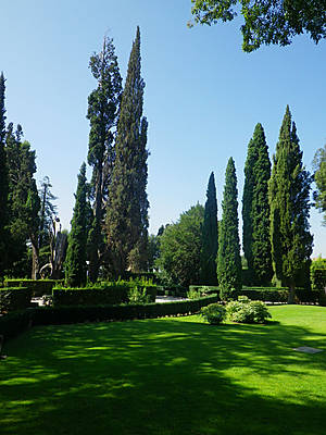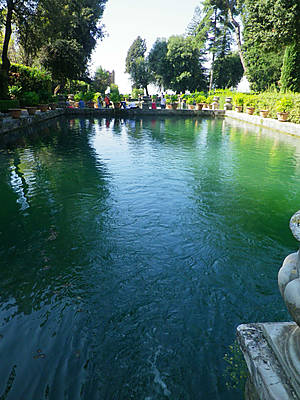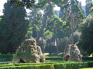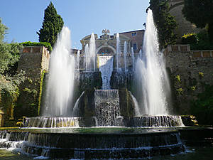 Живая природа тесно вплетена в структуру всего парка виллы кардинала д’Эсте. Высокие кипарисы словно зелёные струи воды из фантастических фонтанов устремлены вверх. Аркады, гроты, тенистые аллеи позволяют даже в жаркую погоду спокойно гулять по великолепному парку разглядывая каждый его уголок. Величественные фонтаны со множеством струй охлаждают воздух становясь природным кондиционером.