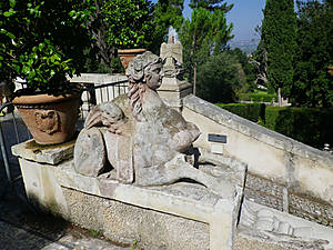 я дошёл до ограды парка, украшенной ещё одним фонтаном. Величественная Мать Природа словно молоком кормящая водой окружающие её растения.При создании парка эта статуя размещалась внутри центральной ниши Фонтана Орган, о котором я расскажу в следующем материале, но позже была установлена около центрального, парадного входа на территорию виллы.