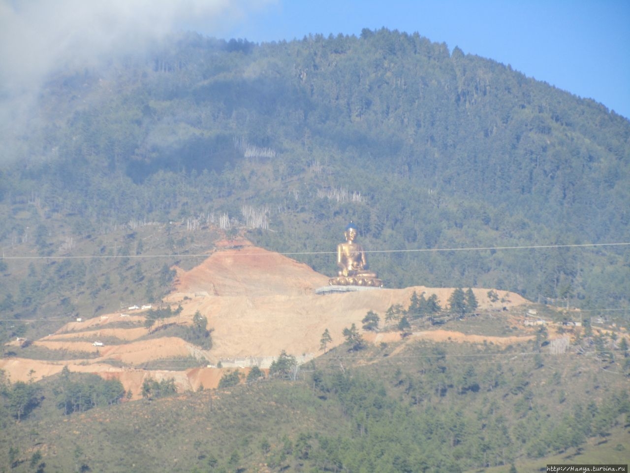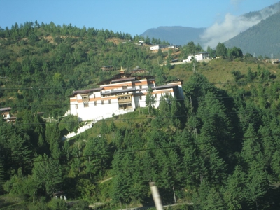 Бутанская кухня и встреча с боссом принимающей стороны. Ч.55), и откушать немного бутанской вегетарианской еды. Утром до завтрака спустили вниз багаж и отправились в отельный ресторан, где убедились в том, что в отель заселились и другие европейцы. Наверное, в связи с этим завтрак был представлен тем же набором, что и вчера, но в виде «шведского стола». В 7.30 мы покинули столицу и направились на юг, в город Пунакху (расстояние от Тхимпху 76 км, на преодоление которых было заложено 3 часа езды), попросив напоследок остановиться по дороге, в километре от Тхимпху, возле дзонга Симтока, чтобы еще раз полюбоваться фигурой Будды, парящей над долиной Тхимпху.