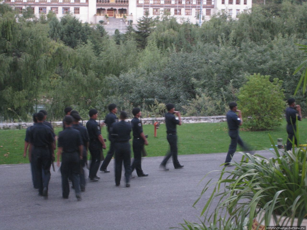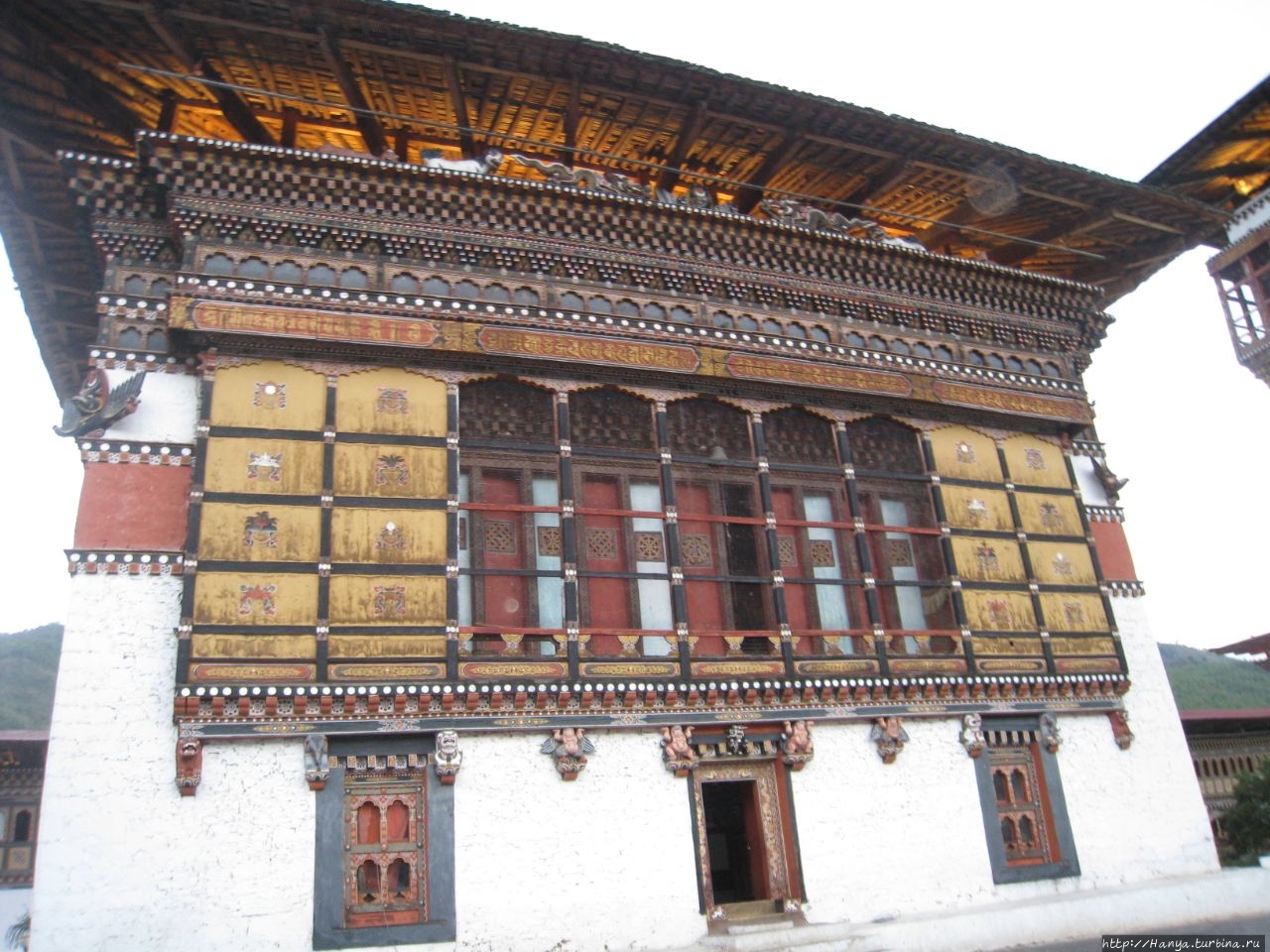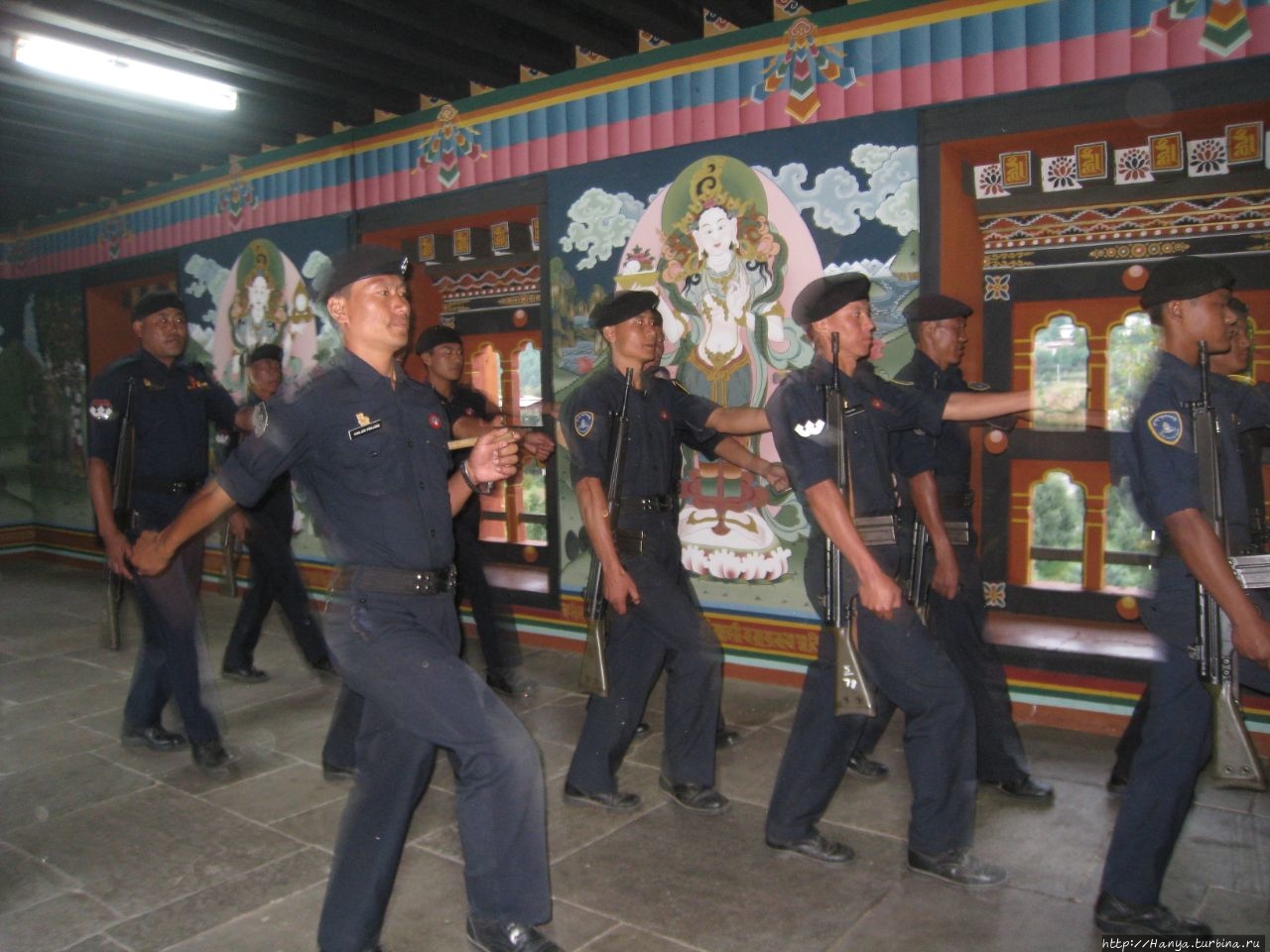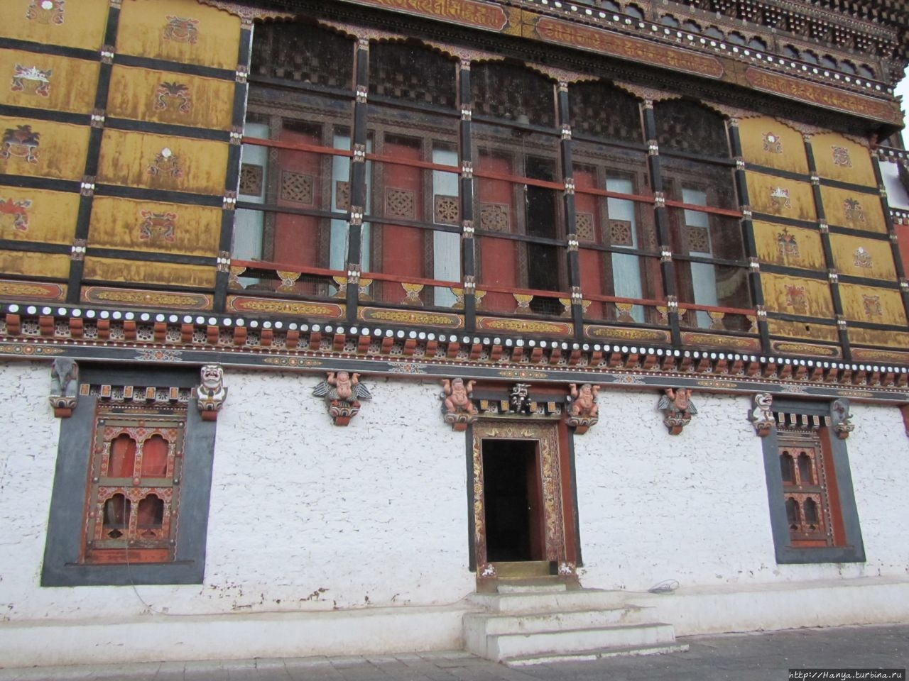 Эта великолепная крепость-дзонг расположена недалеко от города Тхимпху, к его северу, рядом с берегами реки Ванг Чу, на ее западном берегу. Это впечатляюще большое сооружение, окруженное ухоженными газонами и красивыми садами, естественно вписывается в долину, даруя городу царственное великолепие и монашеский стиль. Оказывается и хорошо, что мы приехали сюда в конце дня, именно в это время посетителей допускают внутрь.