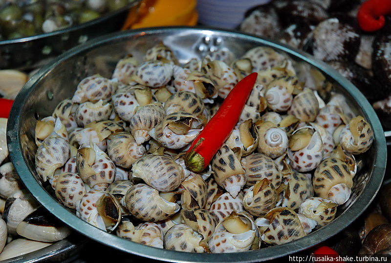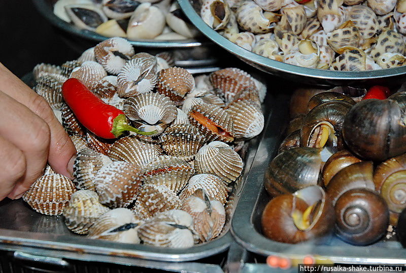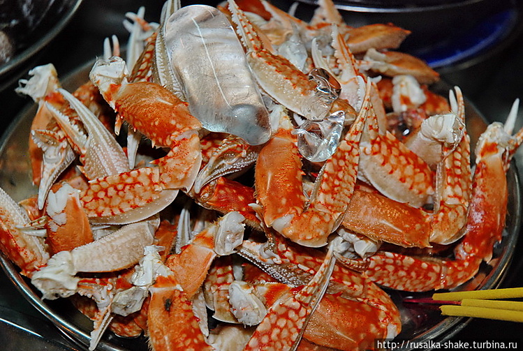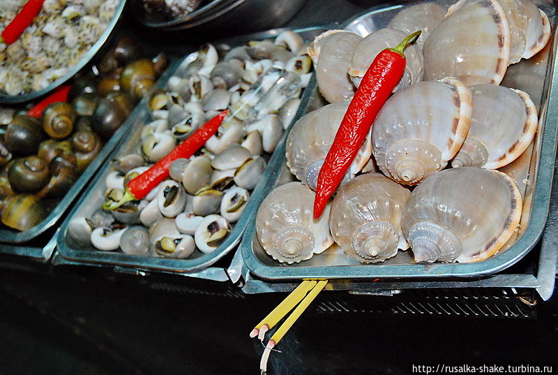 На втором месте — морепродукты! Рядом стоит мини-печка-гриль. Тут же приготовят за пять минут! И велком, можете садиться на малюсенькие стульчики (если поместитесь и не развалите их).