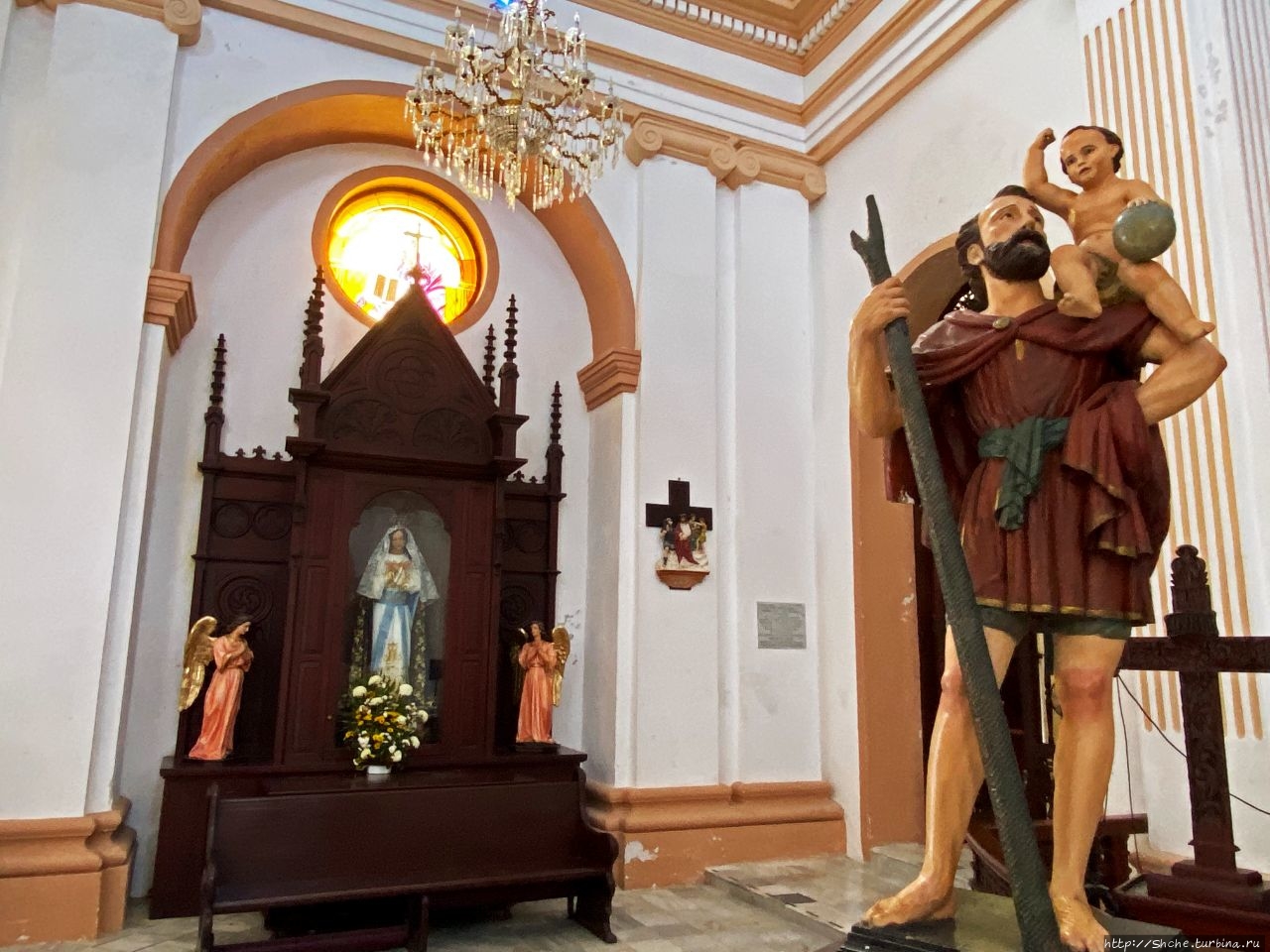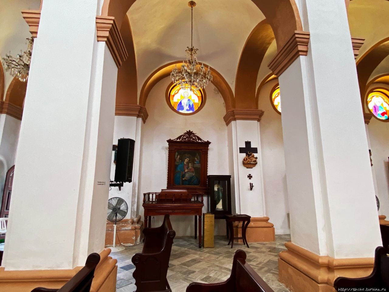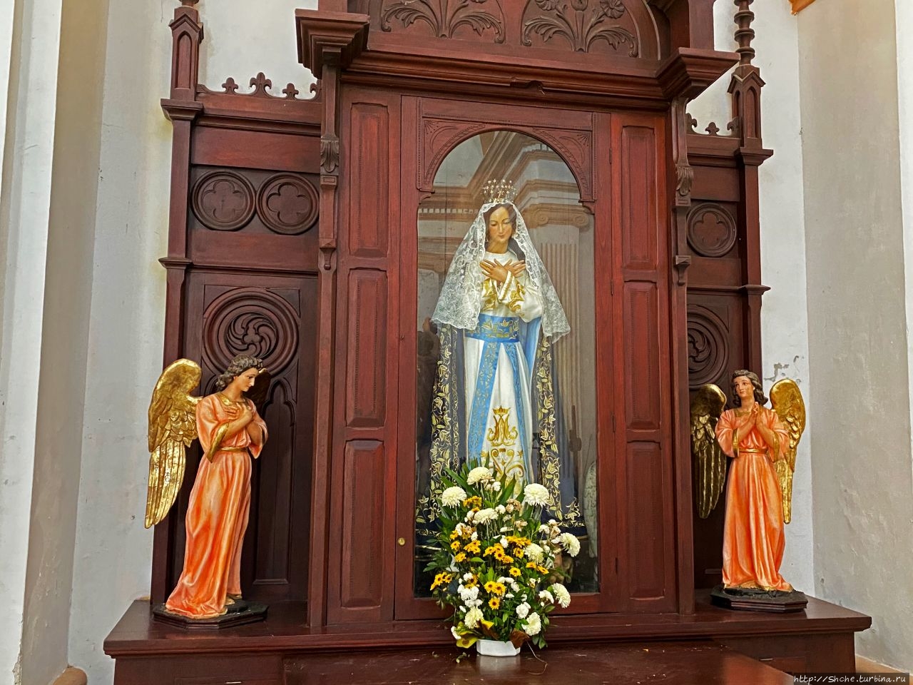 Не смотря на название, на главном алтаре, вырезанном из ценных пород дерева, мы видим образ Богоматери Гваделупской.