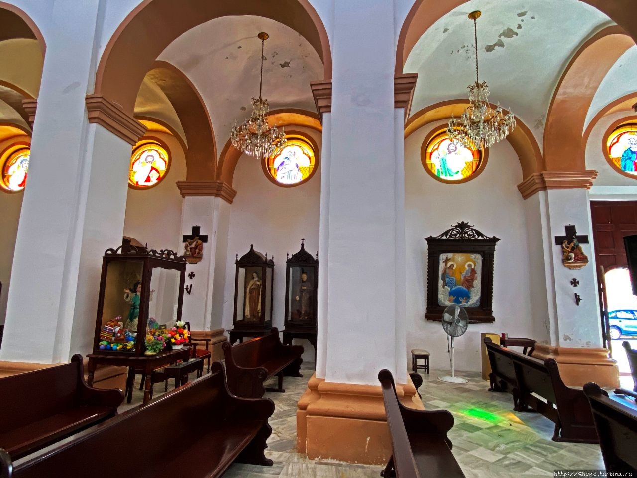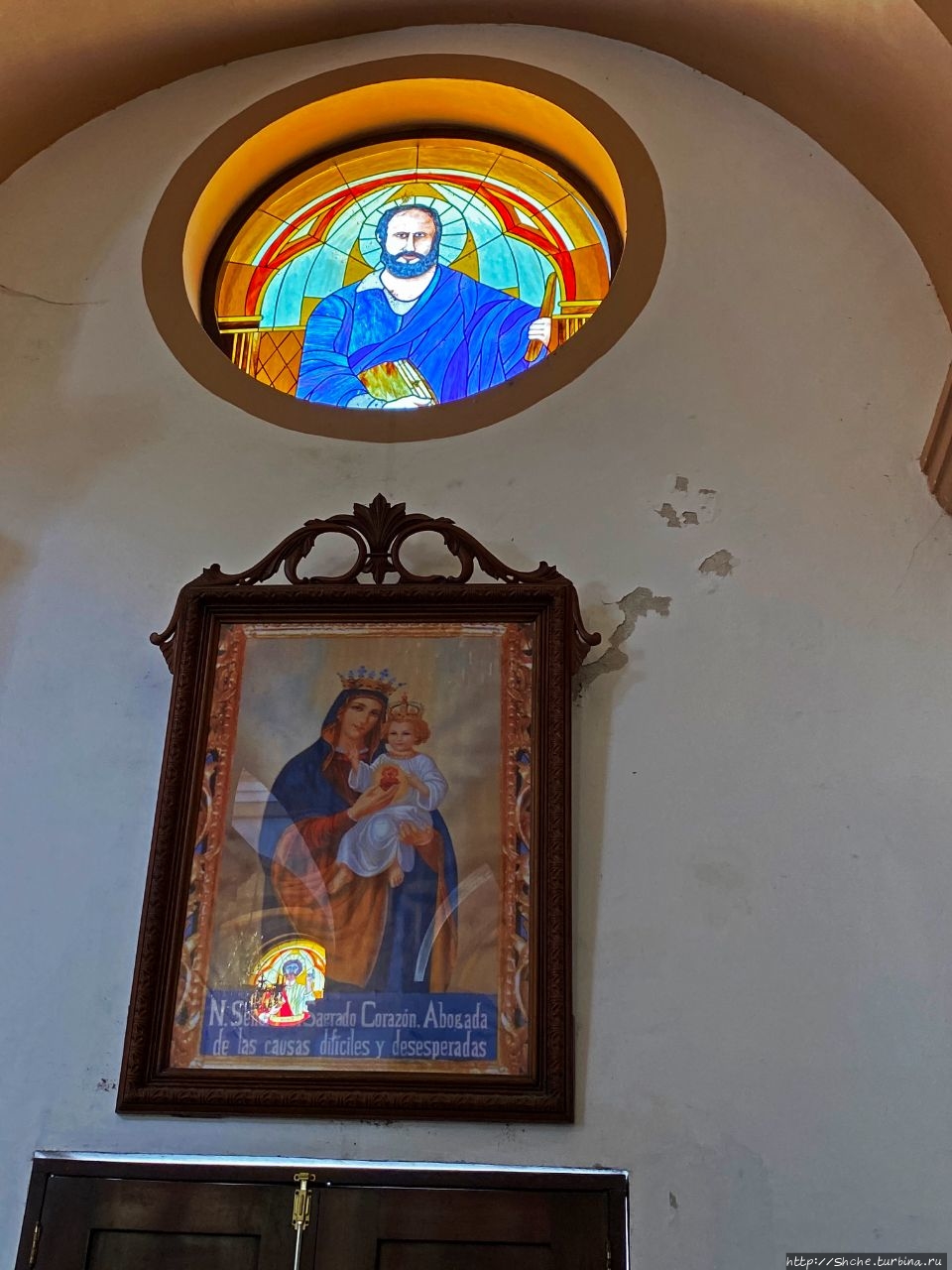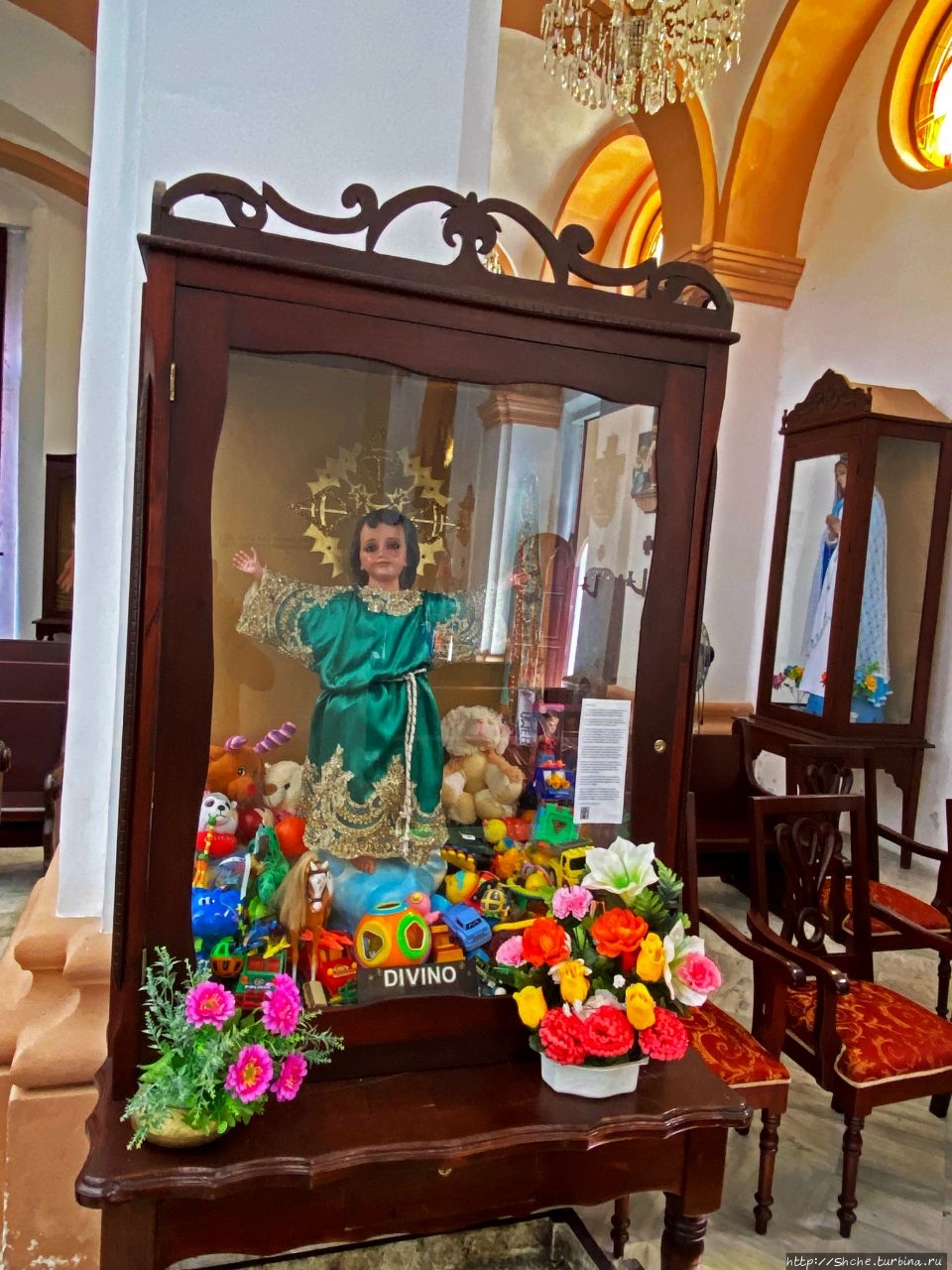 Не смотря на название, на главном алтаре, вырезанном из ценных пород дерева, мы видим образ Богоматери Гваделупской.