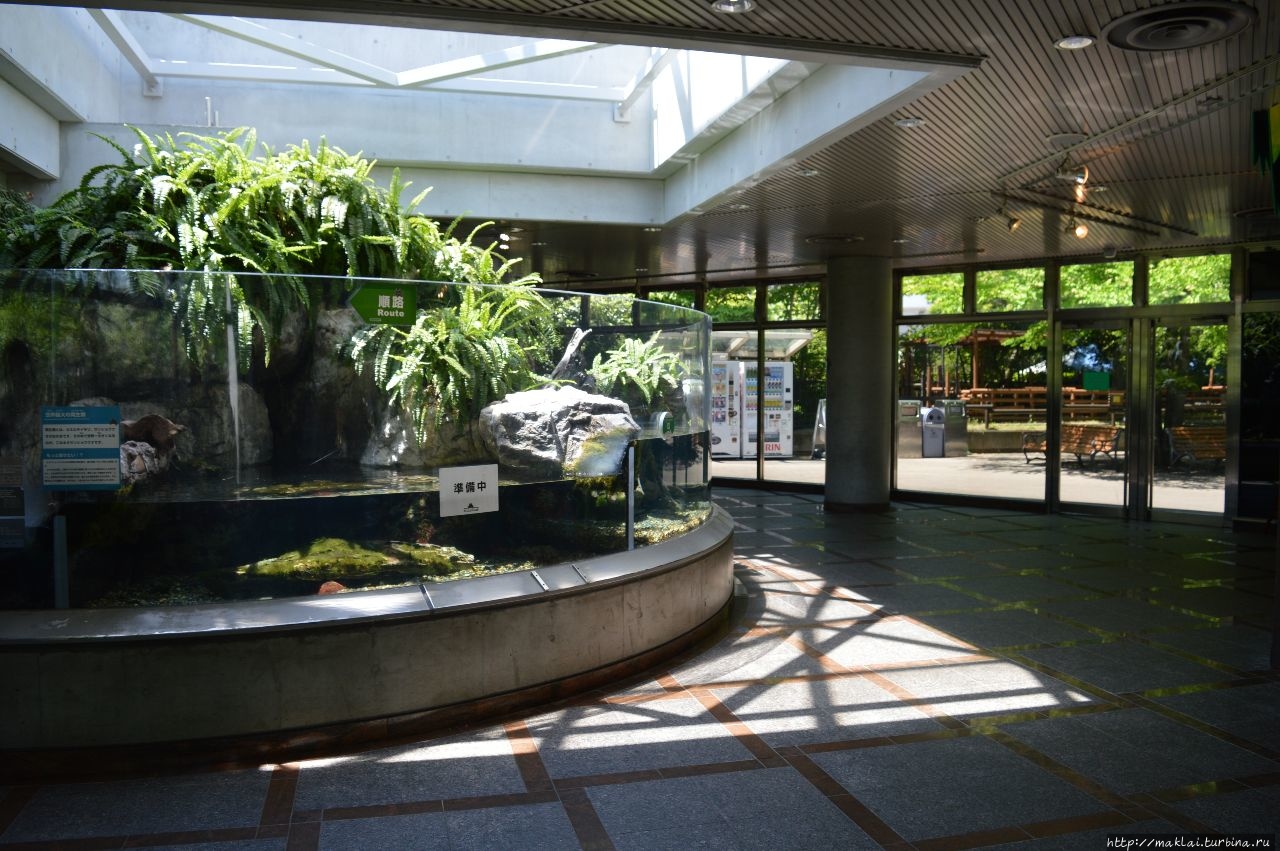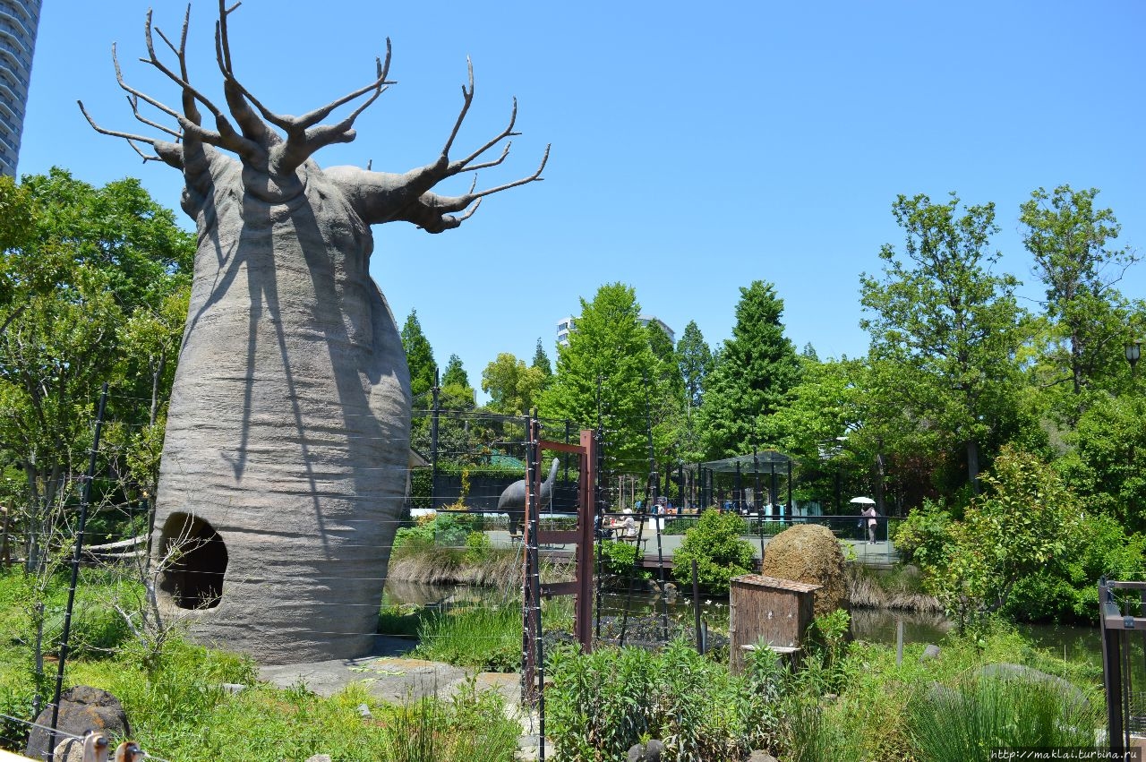 Зоопарк разделён на восточную и западную секции. В восточной — можно увидеть японских диких птиц и животных, а также тигров, медведей, полярных медведей, тюленей, слонов и т.д.