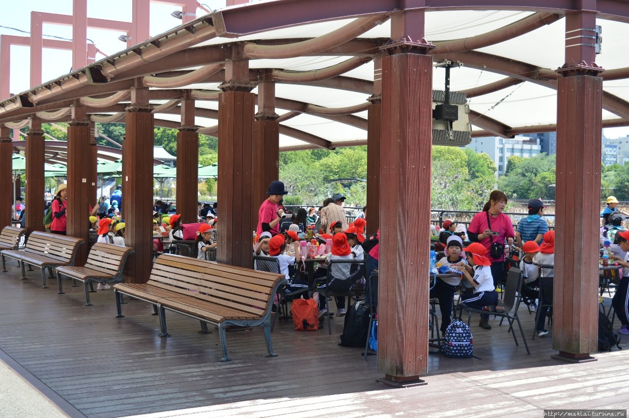 А ещё здесь просто приятно гулять по аллеям. Есть кафе, повсюду скамейки. К слову, последнее не очень характерно для Японии.