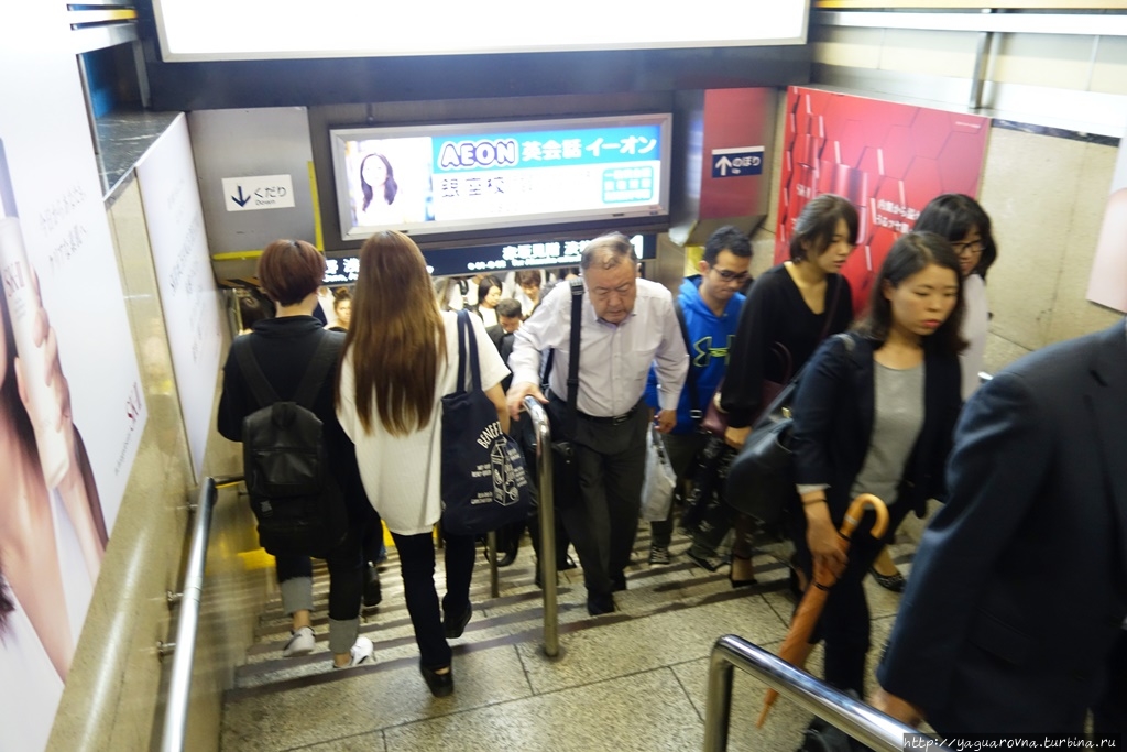 Первым делом надо найти тот вход, который ведёт на вашу станцию. Именно вход на конкретную станцию, а не спуск под землю. Там стоят турникеты, а над ними висит указатель на японском и английском языках. Указатель либо выделен цветом, который присвоен этой линии, либо на нём есть иконка этой линии со стрелкой-указателем. Поверьте, так удобнее.