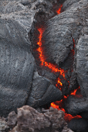 не наблюдалось. Только лишь разогретые докрасна камни. Хотя температуры внутри этой полости хватило, чтоб опалить горячим воздухом волосы на голове и лице некоторым моим попутчикам. Значит, остывать это всё будет ещё очень долго. Как рассказывали мне, снег на