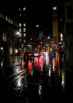 Самое привлекательное в городском вечернем дожде это то, что количество огней увеличивается вдвое, ведь стоп сигналы машин, светофоры, фонари начинают отражаться на мокром асфальте.