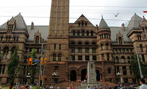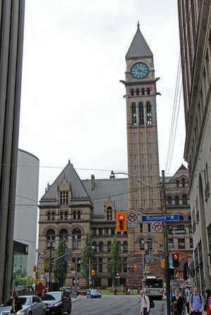 В Торонто мы разместились в отеле возле порта на берегу Онтарио. Вечером нас ждал супер-концерт групп "Def Lepard" и "Kiss". А перед концертом мы решили пешком прогуляться в даунтаун к "Хард Рок кафе". Наш путь и проходил мимо знаменитой телевышки через самый высотный район города Old Toronto и далее возле Сити-холла. Мы шли по фотогеничному городу, но чего-то сильно не хватало. Может свежести впечатлений, а может влиял на настроение повсеместный ремонт улиц. Ведь сильно раздражает, когда постоянно приходится по узким трапикам переходить разрытые участки и по сторонам наблюдать сплошные ограничения из не струганной доски и сетки "рабицы".