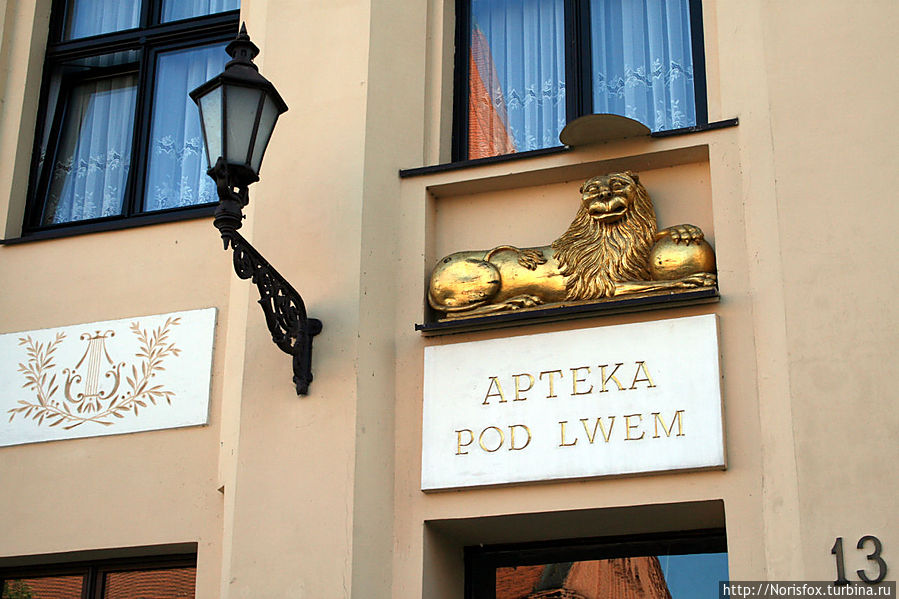 Нумерации домов в Торуни не существовало и поэтому их старались чем-то выделить. Так появились дом «Под звездой», дом «Под золотым львом» (ныне аптека),