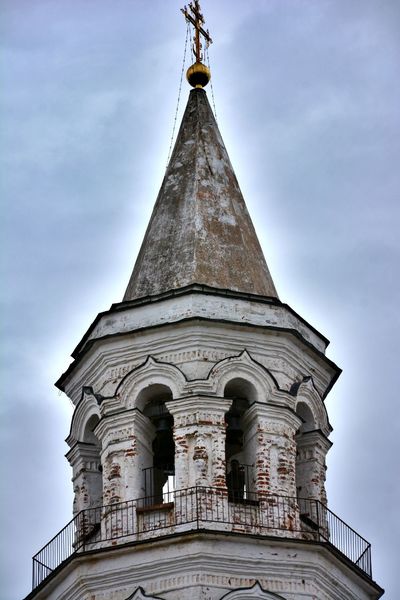 переходящий в высокую трёхярусную колокольню и воздушную ротонду увенчанную крестом