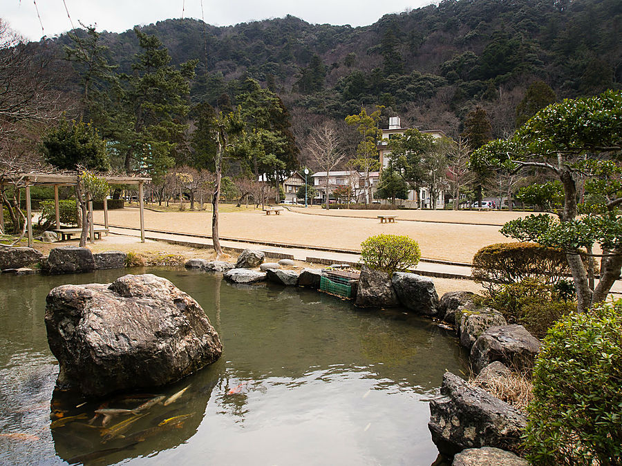 сада в храме Каннон-ин у меня ещё оставалось какое-то время перед посадкой в поезд, который должен был умчать меня на Сикоку. Я просто взял и пошёл по улице, следуя туристическим указателям, каковые и привели меня в этот парк, где было блаженно тихо и тоже начинали зацветать сливы.