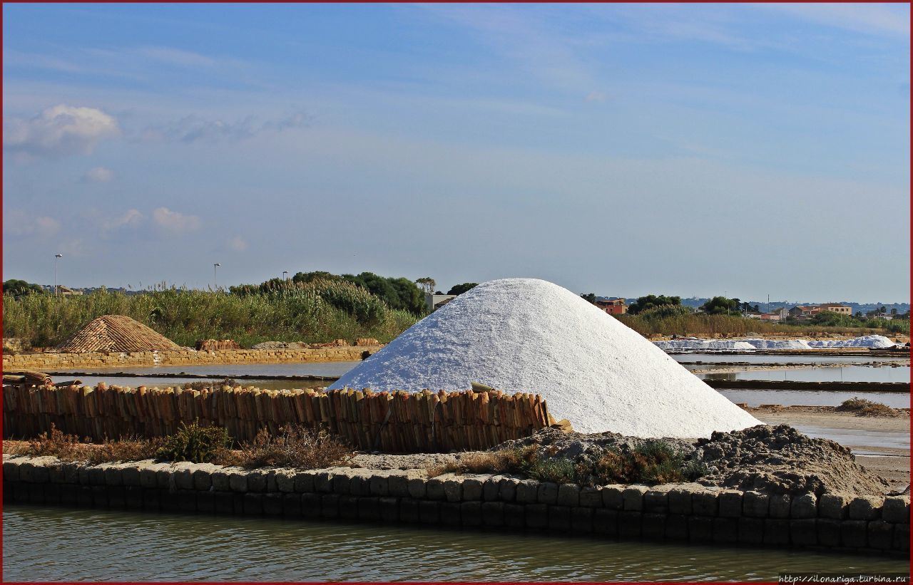 Пожалуй, одним из интересных мест в Трапани можно назвать местные солеварни, которые ведут свою историю еще с финикийских времен. С тех пор методы добычи соли не изменились: на берегу моря по-прежнему существуют неглубокие бассейны, в которые с помощью архимедова винта закачивают воду из моря. С их же помощью воду перекачивают из одного бассейна в другой — более мелкий, по мере того, как она испаряется, оставляя по краям резервуаров слой соли. Когда такой соляной слой накапливается (сантиметров 10), его аккуратно снимают и складывают тут поблизости — в кучки.