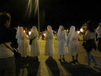 При этом каждый несет лампадку и поет. Проносится статуя Девы Марии. Все очень нарядно и красиво, а еще очень интересно.