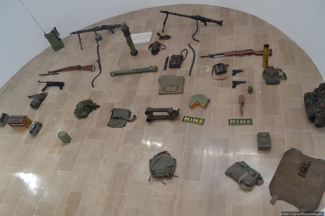 В подземной нише — образцы оружия, как напоминание о жестокости и варварстве войны.
