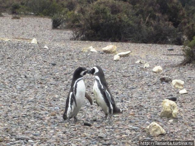 Дождь уже кончился и солнышко засияло, согревая промозглую землю. И тут произошло нечто странное. Один их пингвинов заметил мой голубой ботинок и замер рассматривая. Мы остановились тоже, тогда он повернул голову вверх и увидел мои синие джинсы. Джинсы вызвали у него отрицательные эмоции и он побежал ко мне. Мы не шевелились, а глупый пИнгвин трижды ущипнул меня за брюки и вновь уставился на ботины. Мы уж хотели потихоньку уйти, а он двинулся за мной.