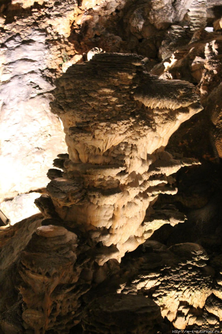 Капли воды, просачиваясь сквозь толщу земли и вступая в реакцию образует сталагмиты и сталактиты различной формы и расцветок. Спустя тысячелетия на дне и на сводах пещеры образовались такие причудливые формы, что заставляет работать воображение на все сто.