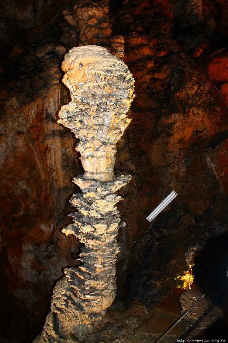 Главный экспонат этой пещеры стоит перед самым подъемом. Это колонна Ружжеро сталагмит высотой 12 метров , шириной 4 и возрастом 200 000 лет. На что он похож трудно сказать. Здесь оставлю многоточие на ваше воображение.