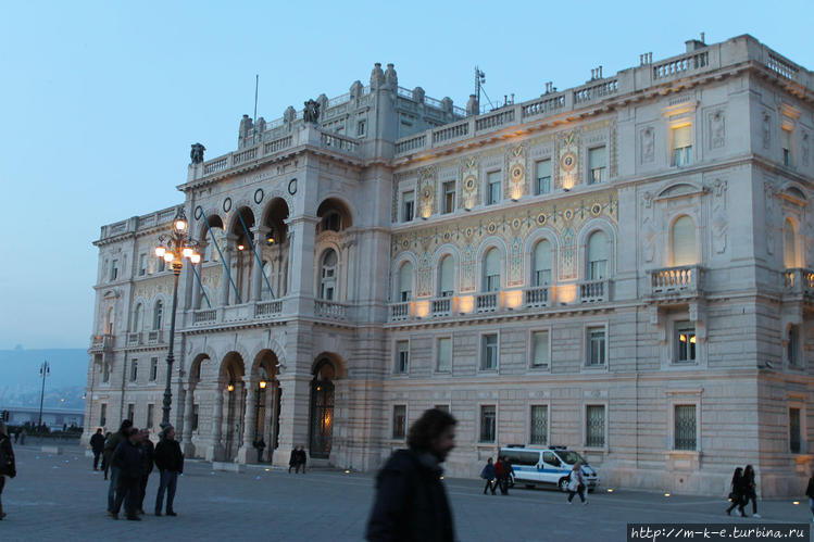 Встанем лицом к морю и спиной к фонтану. Слева будет самое старое здание на площади дворец Питтери (Palazzo Pitteri). Его выстроил в классическом стиле в 1780 году архитектор Альдерико Моро. Рядом стоит одна из самых дорогих и шикарных в Триесте гостиниц — Grand Hotel Duchi d`Aosta, появившаяся на площади в 1873 году. Всех ближе к морю по этой стороне дворец с длинным названием Palazzo della Giunta Regionale. Здание когда-то принадлежало страховому и финансовому гиганту Lloyds, а теперь в нем квартирует правительство автономного региона Фриули-Венеция-Джулия.